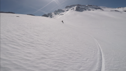 Morgens 7.30 noch hart, mit Harscheisen aber kein Problem. Die Wechte beim Frühstücksplatz tropfte schon mächtig und ist mit Vorsicht zu begehen. In der Abfahrt zunehmend sulzig aber nicht schlecht.