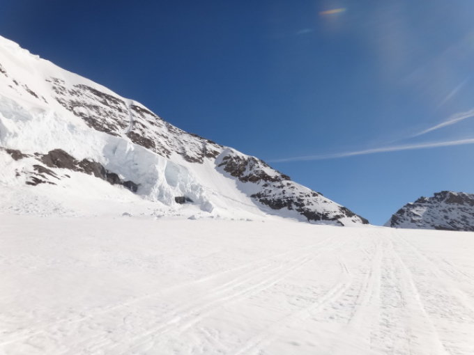 Grundsätzlich ausgezeichnete Verhältnisse, allerdings sehr warm. Auf dieser Höhe war der Schnee noch mehrheitlich hart. Beim Abstieg gingen aber ganz kleine, oberflächliche Rutsche von nassem Schnee ab. Es war wirklich unglaublich warm für diese Jahreszeit und besonders auf dieser Höhe (wie gemeldet). Auch Frühlingstouren in der Höhe sollten frühzeitig beendet werden, auch wenn die Gletscher sehr gut eingeschneit sind. Brücken könnten mit der tageszeitlichen Erwärmung durchaus nicht mehr halten. Brücken und Schneeverhältnisse konnten wir am Sonntag am Louwihorn/in der Lötschenlücke dann allerdings besser beobachten. Bericht folgt...