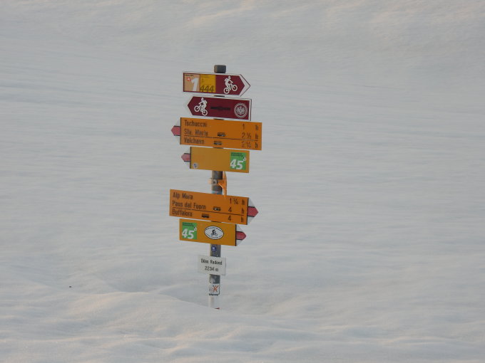 Bleibt so oben, von Valchava aus schon ab 1750 kein Schnee und sehr schnell abnehmend.
