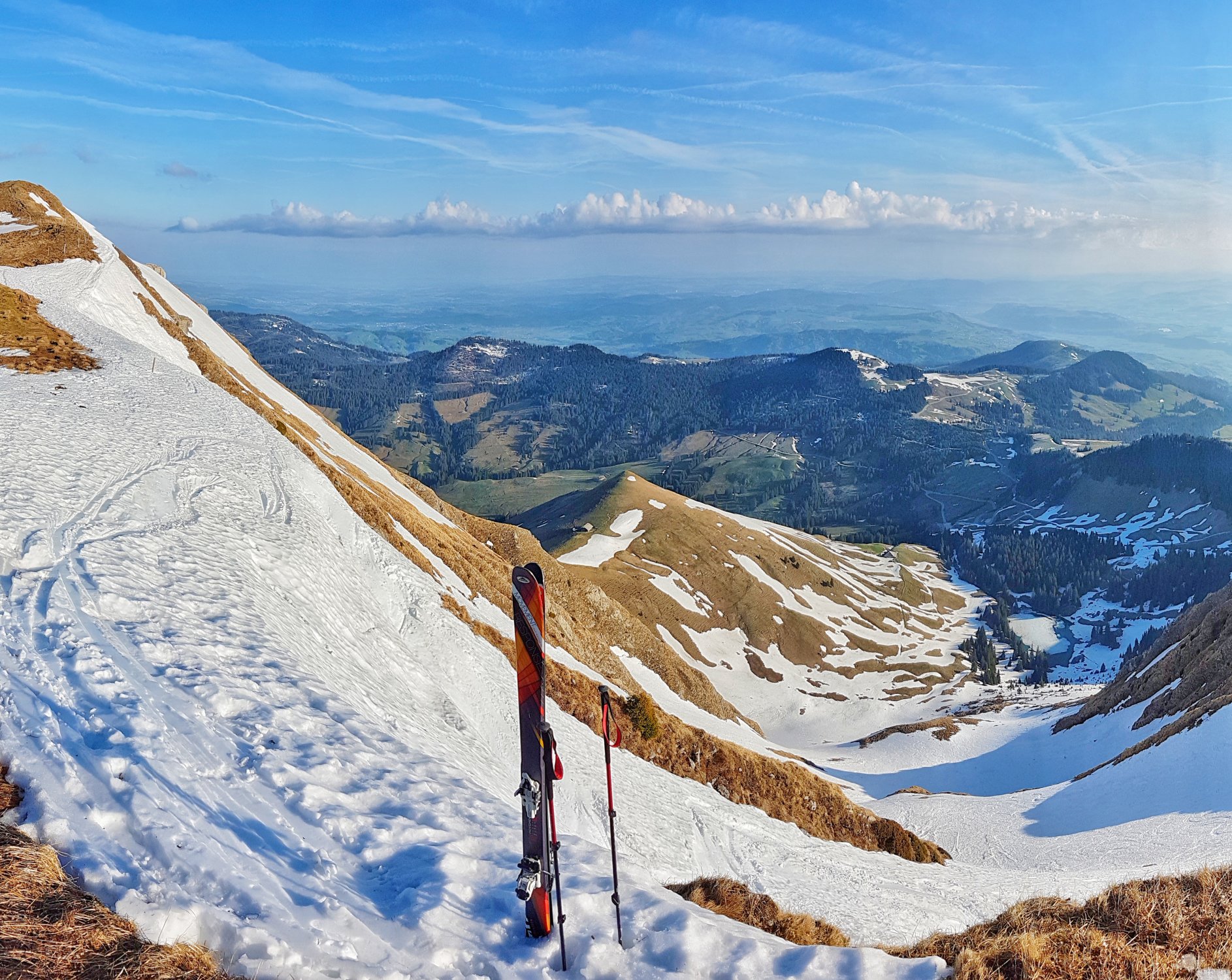 Ich bin aufgrund des nicht gerade einladenden Morgetenpasses mit aufgebundenen Skis über den NW-Grat auf die Bürgle, die Nordflanke runter, mit aufgebundenen Skis auf die Bire und dann retour zur unteren Gantrischhütte. Der Schnee schwindet rasant.... Noch geht's von der Bire gerade bis zum Brüggli.... Die Nordflanke war obwohl nicht durchgefroren ganz passabel und prima fahrbar. Die Blumenpracht ist einmalig. Heute gab's stärkerer Westwind. Wer noch gehen möchte sollte dies jetzt noch tun...