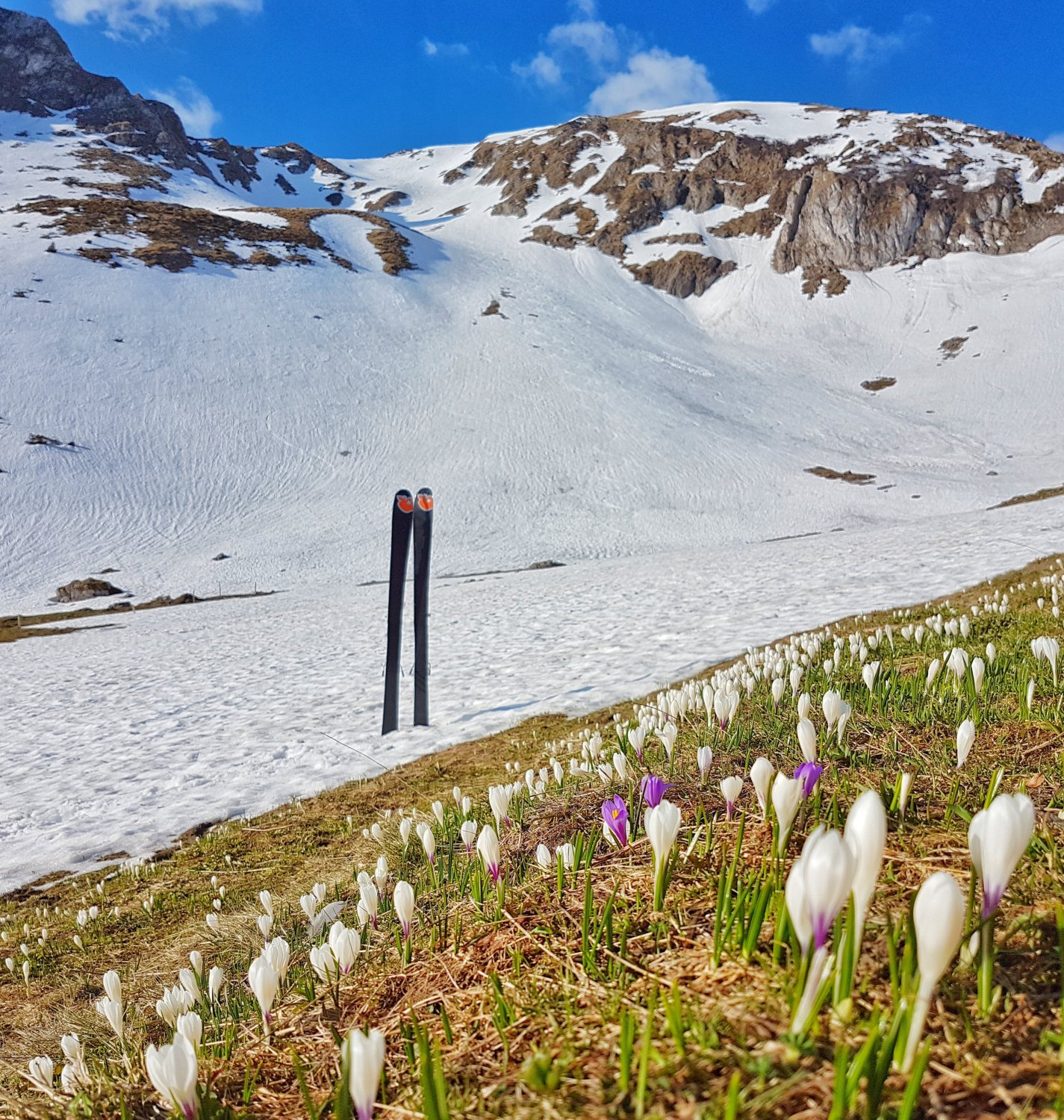 Wer top Schneeverhältnisse sucht wird falsch bedient.... Wer Krokusse liebt ist goldrichtig! Dazu gab es heute gut fahrbarer und gesetzter Nassschnee in der Nordflanke und auf der Bire.