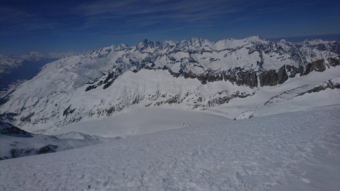 Abgesehen vom schweren Schnee unterhalb von 2500m am Weg runter geht's kaum besser. Grat ist super eingeschneit und gespurt. Die obersten 2m zur Wächte sind recht steil, aber gut machbar. Zu früh kann man bei den aktuellen Temperaturen glaub kaum abfahren :-)