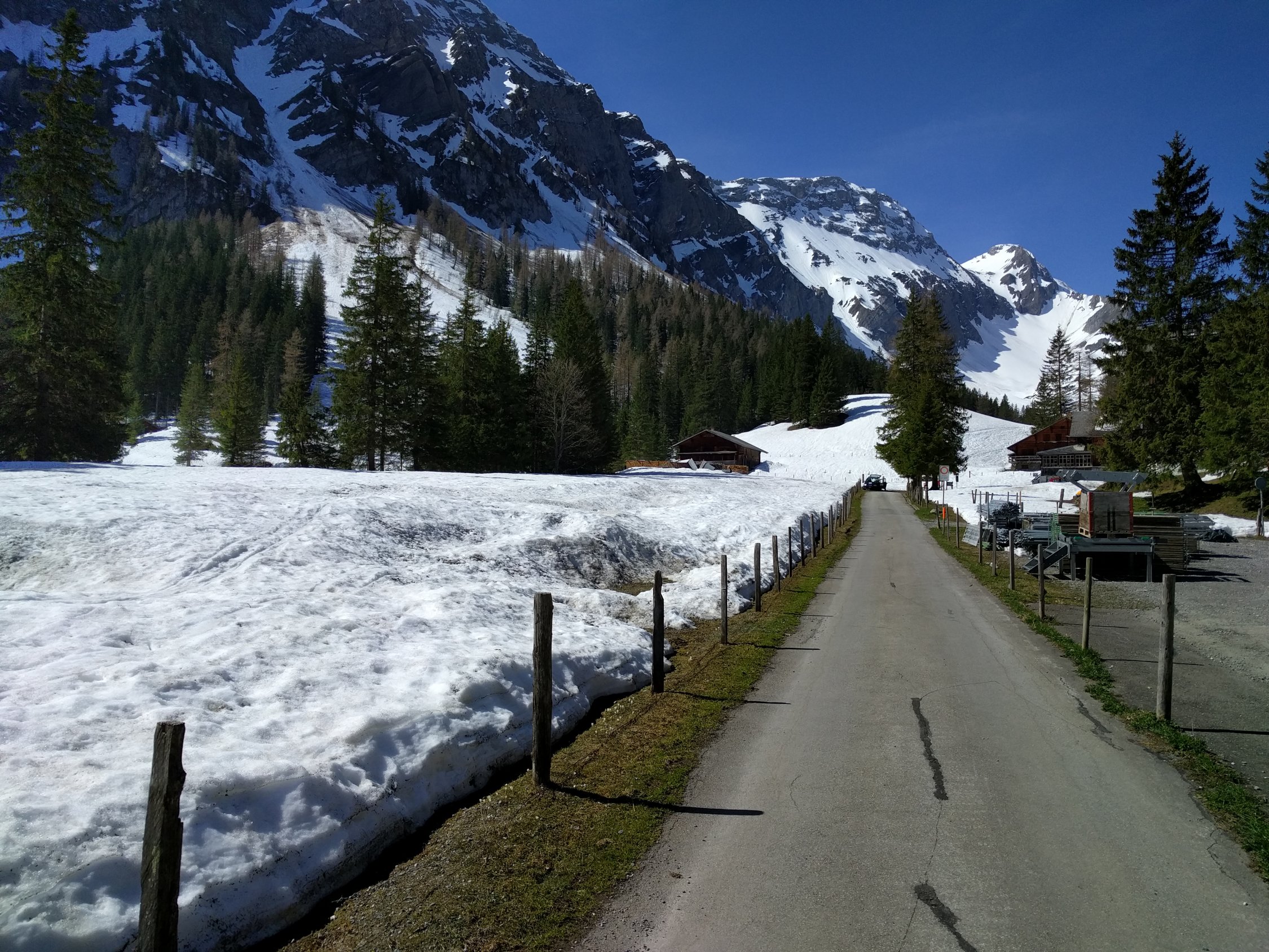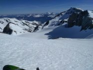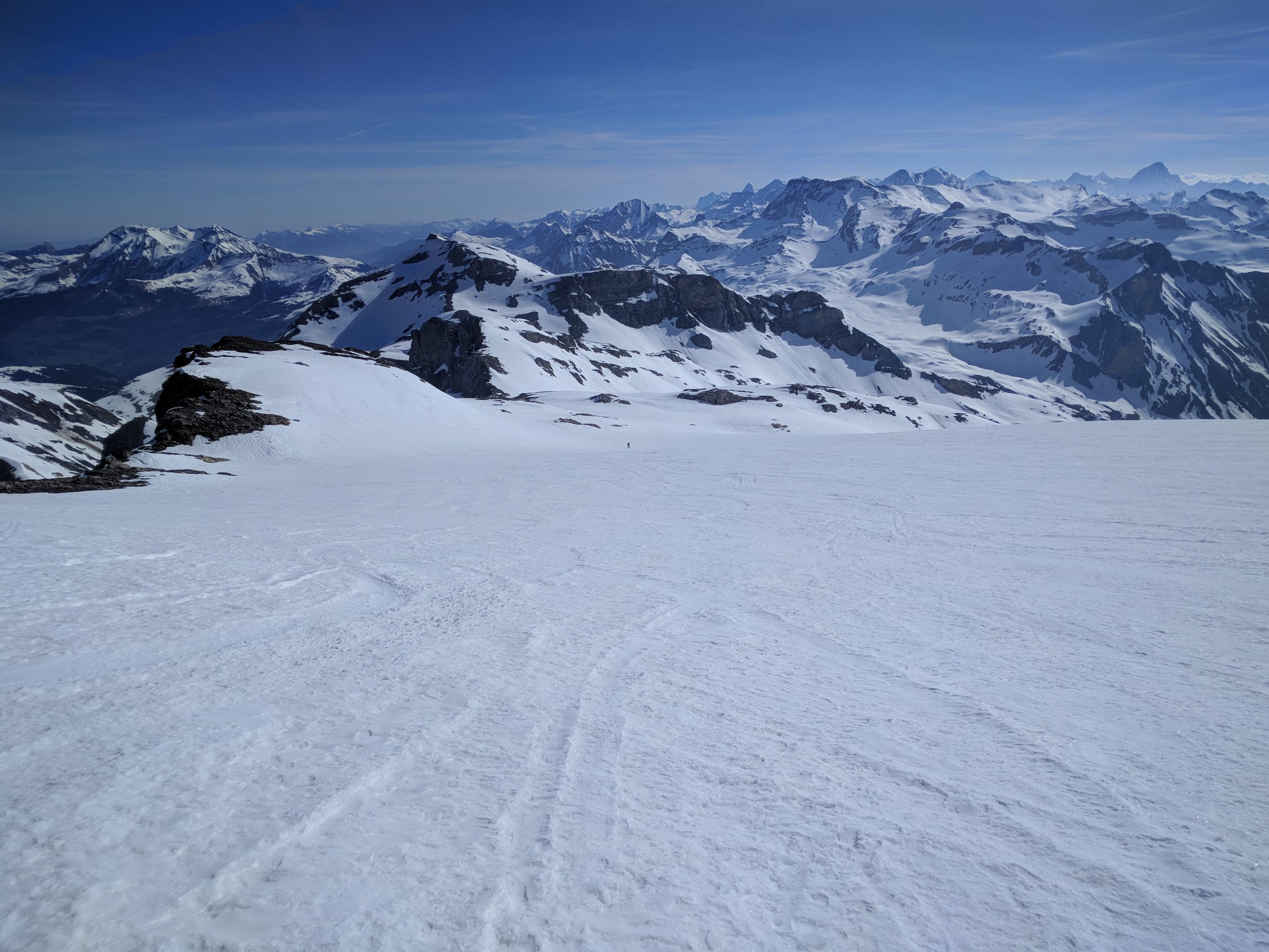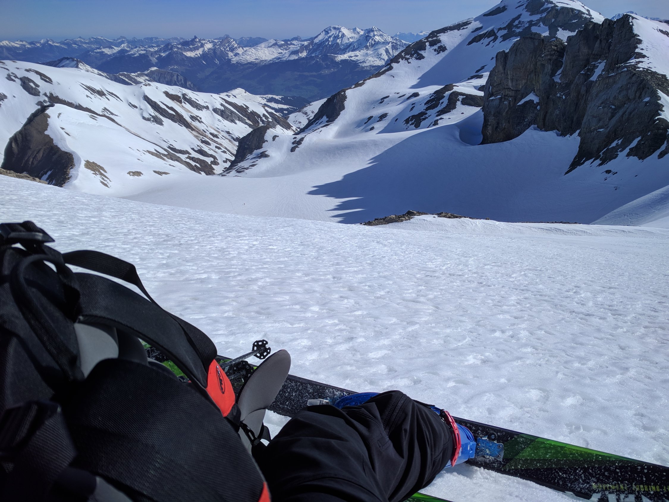 Dank der kalten und klaren Nacht durchgehend gefrorene Spur. Kaum Gras- oder Tragepassagen, See kann noch begangen werden. Bei einzelnen Stellen vor dem Chilchli wird der Schnee knapp. Gletscher gut eingeschneit. Harsteisen an einigen Stellen praktisch aber nicht notwendig.