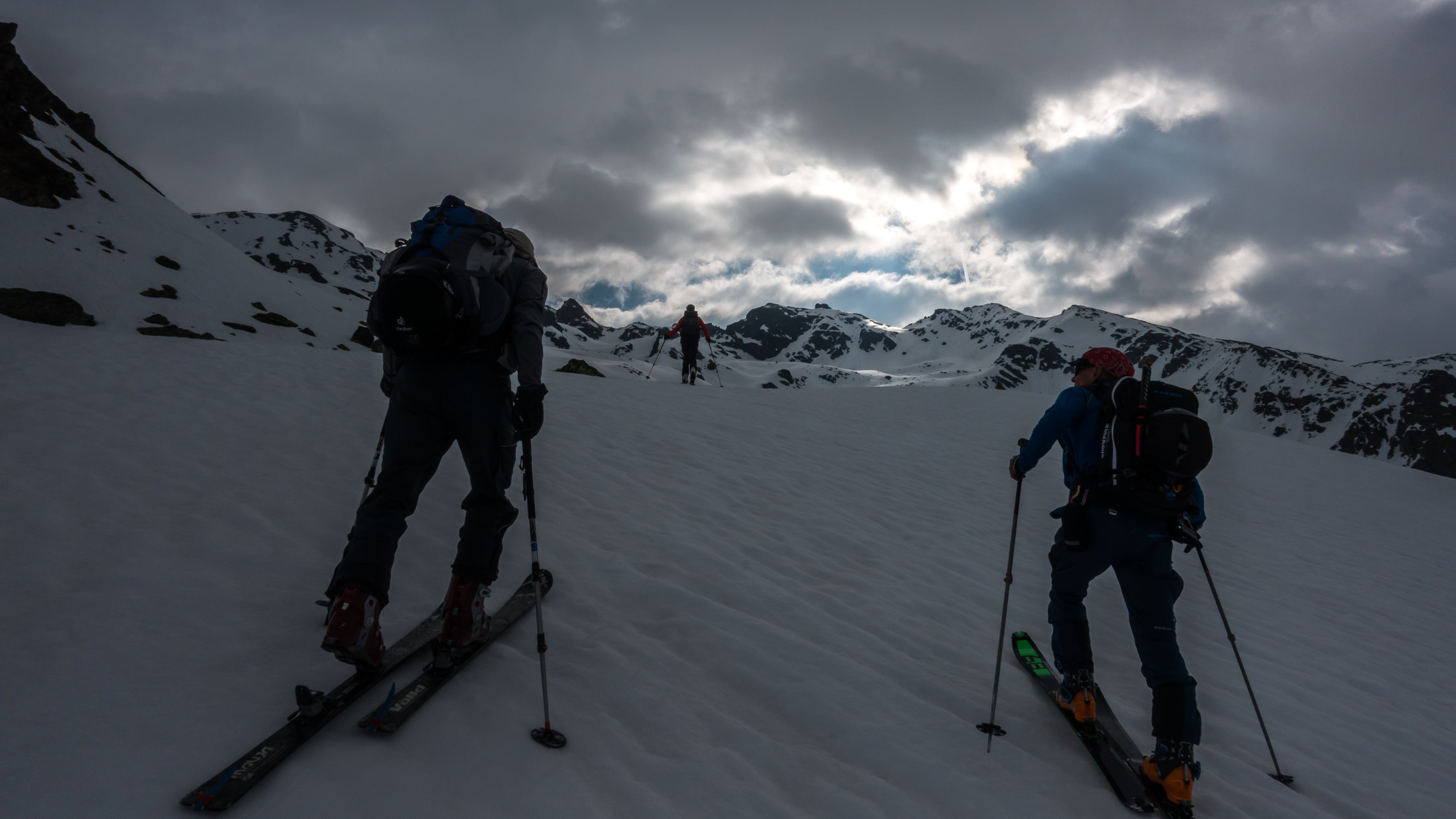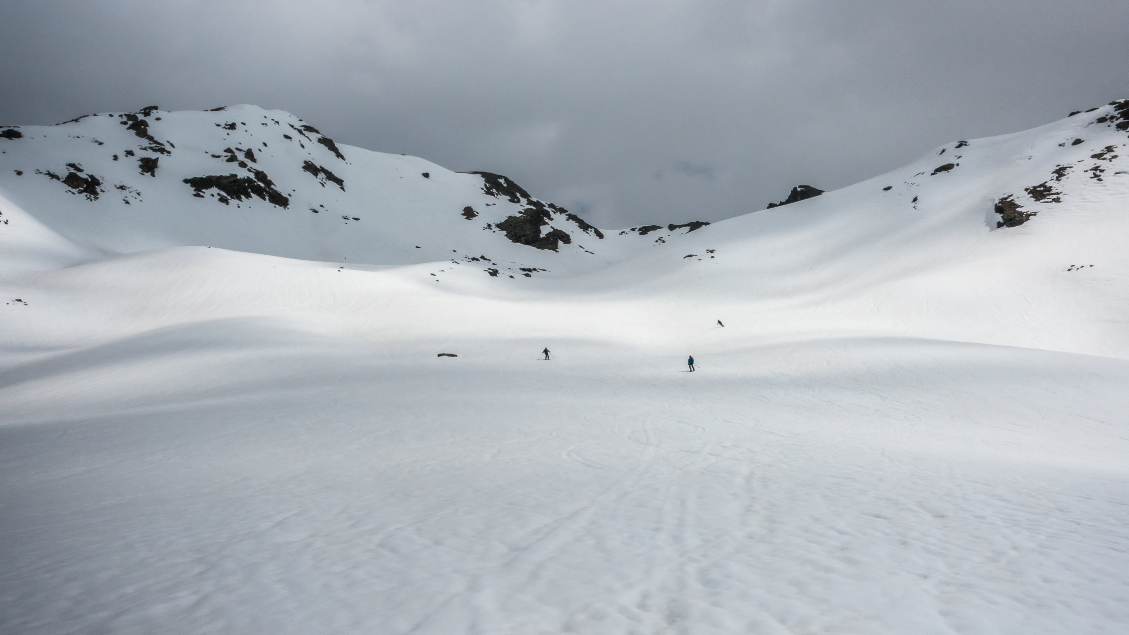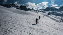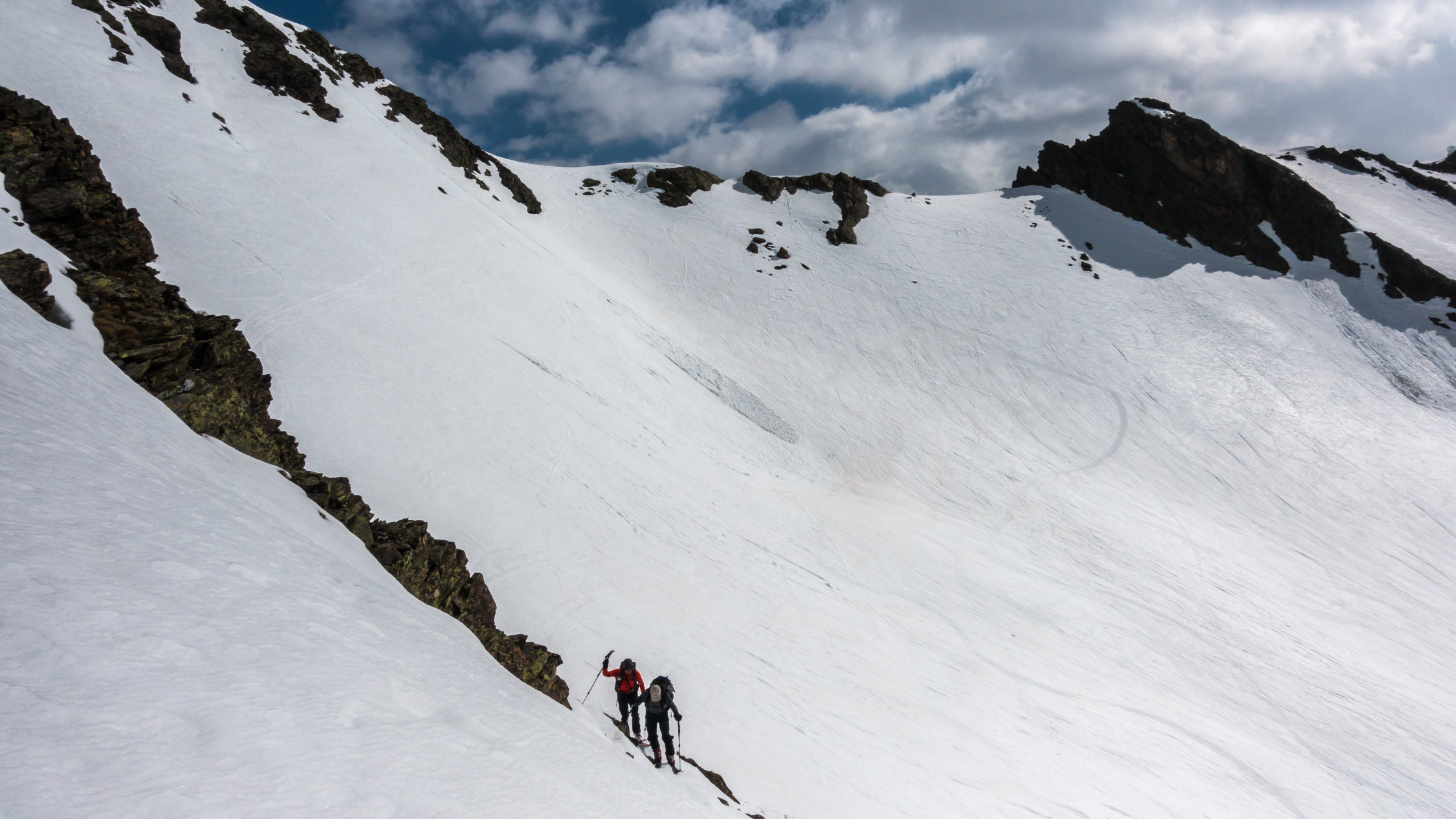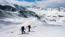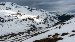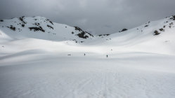 An der Steilstufe ab Tschuggen wird der Schnee langsam knapp, mit etwas Spürsinn momentan noch gut machbar. Wenn's weiter taut, kann man noch weiter rechts (südlich) aufsteigen wo noch etwas mehr Schnee liegt. Die Westseite mit dem Sentischhorn ist noch lange machbar.