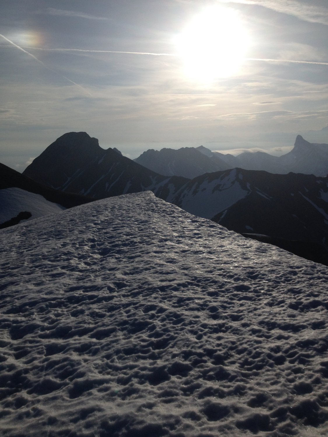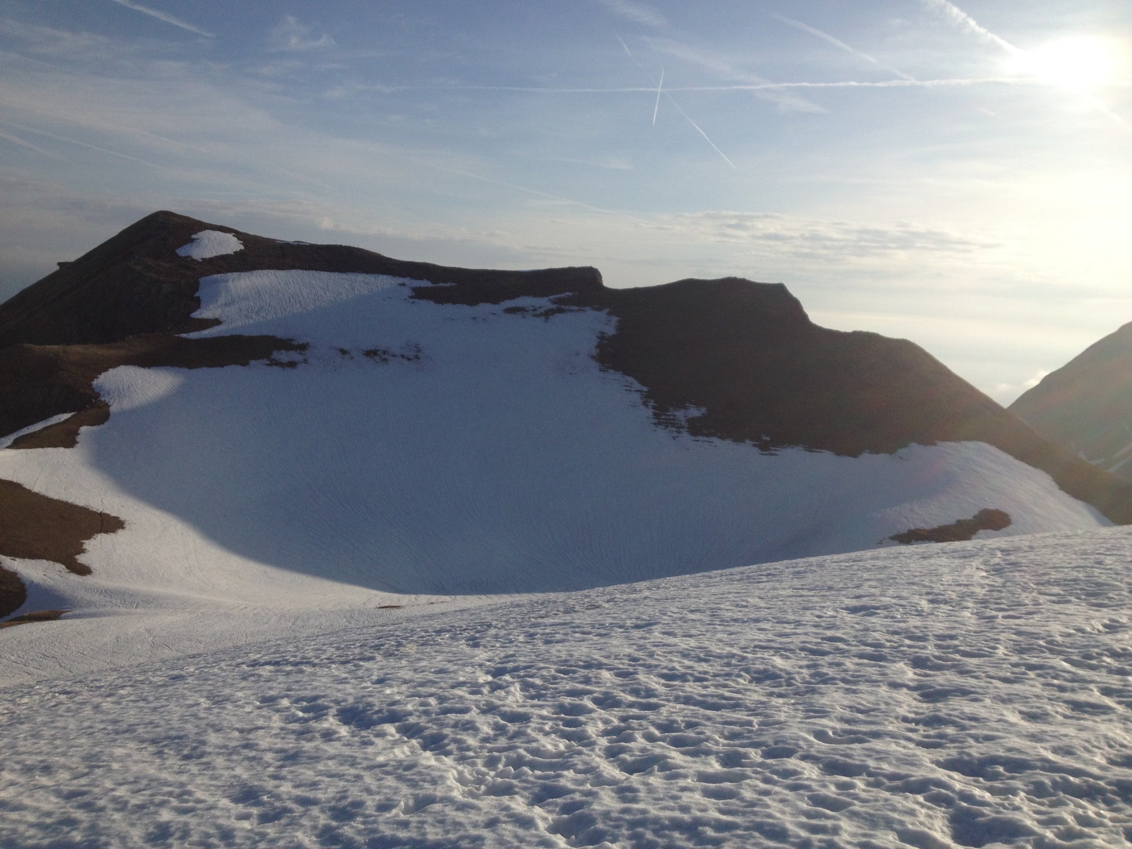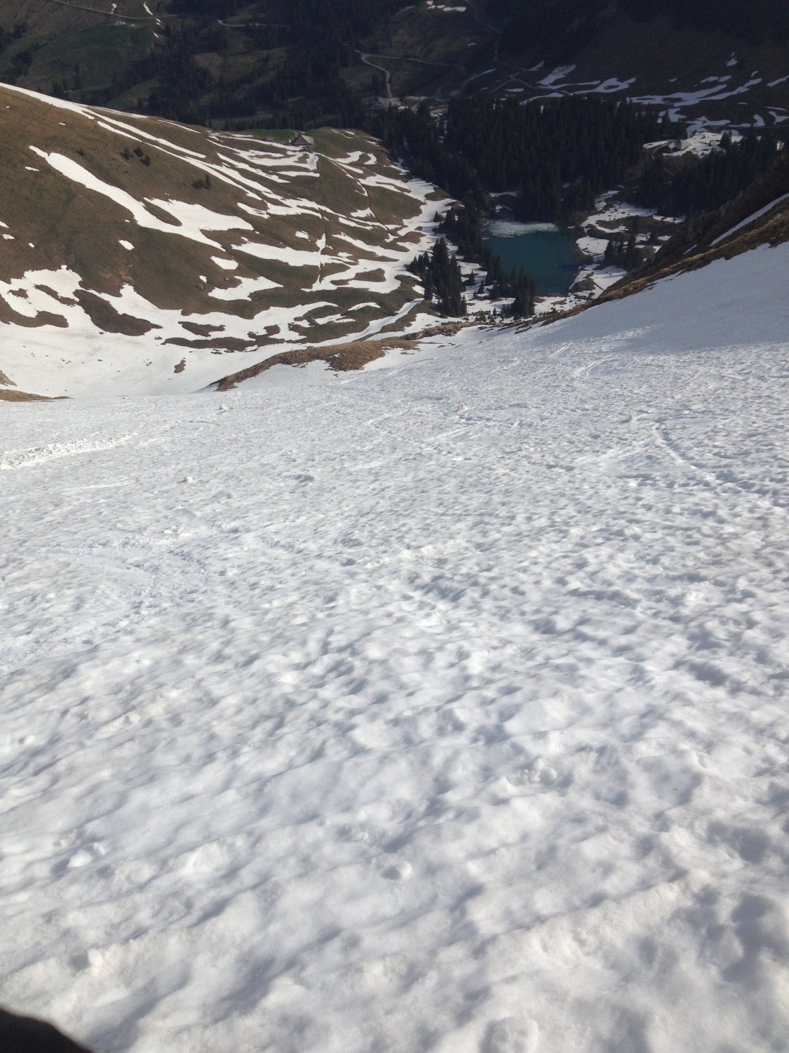 Bin heute um 5.45 bei der unteren Gantrischhütte gestartet bei 6°. Die Schneedecke war griffig, nicht gefroren. Kurz Ski tragen bis zum Schnee, dann von der oberen Gantrischhütte aus nicht dem Weg entlang sondern durchs kleine Couloir, wie Fädiman vorgeschlagen hat. Ab Chumli genügend Schnee, Morgetepass gut gespurt aber relativ hart, Harscheisen wären vorteilhaft gewesen. Nach dem Morgetepass kurz Ski tragen.