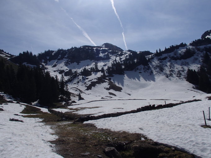 Ab Mittler Stafel (Pkt 1584) durchgehend Schnee.