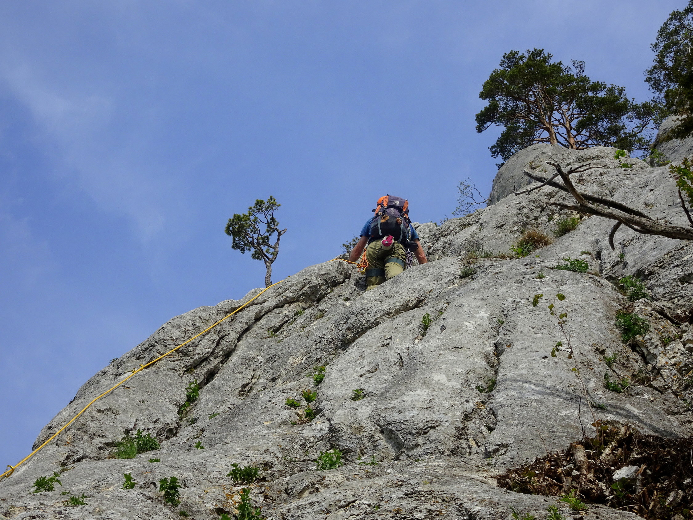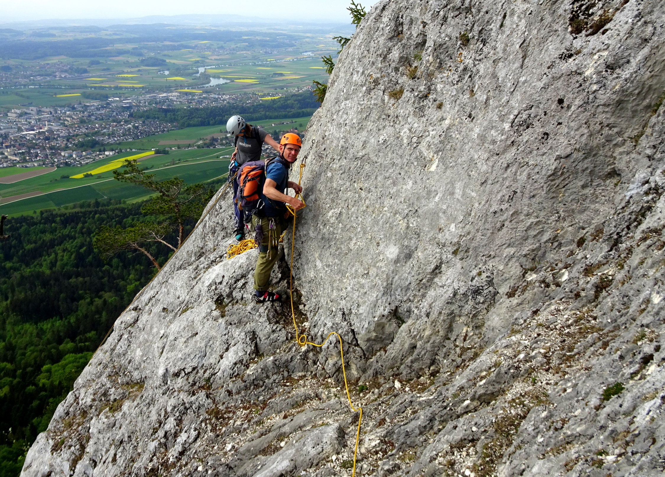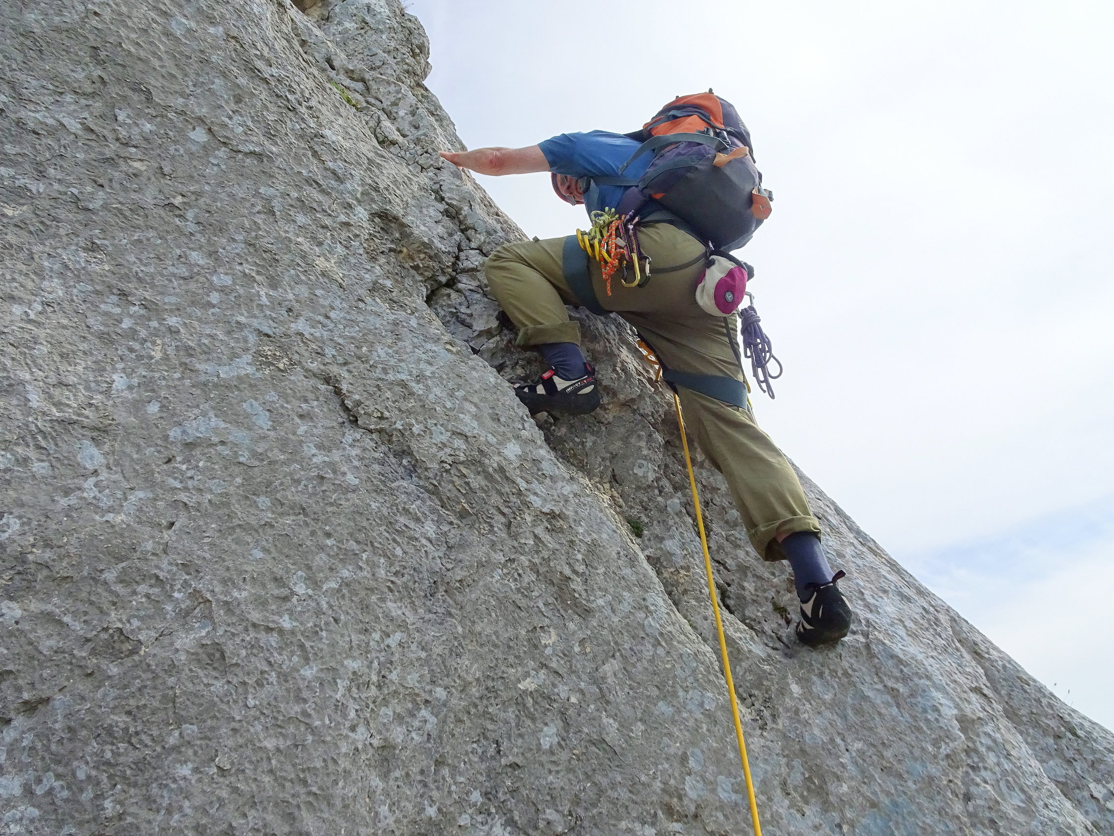 Beim begehen des Eulengrat denkt man unweigerlich an die alten Zeiten wo man mit groben Bergschuhen kletterte und als Zwischensicherung hie und da einen Schlaghaken fand, der manchmal wackelte schon nur beim Anschauen. Da gab es noch nicht die gut gesetzten Bohrhaken und die vorbildlichen Standplätze. Ehrlich, bei der heutige Begehung nach vielen, vielen Jahren habe ich mich sehr wohl und vor allem viel sicherer gefühlt.