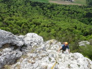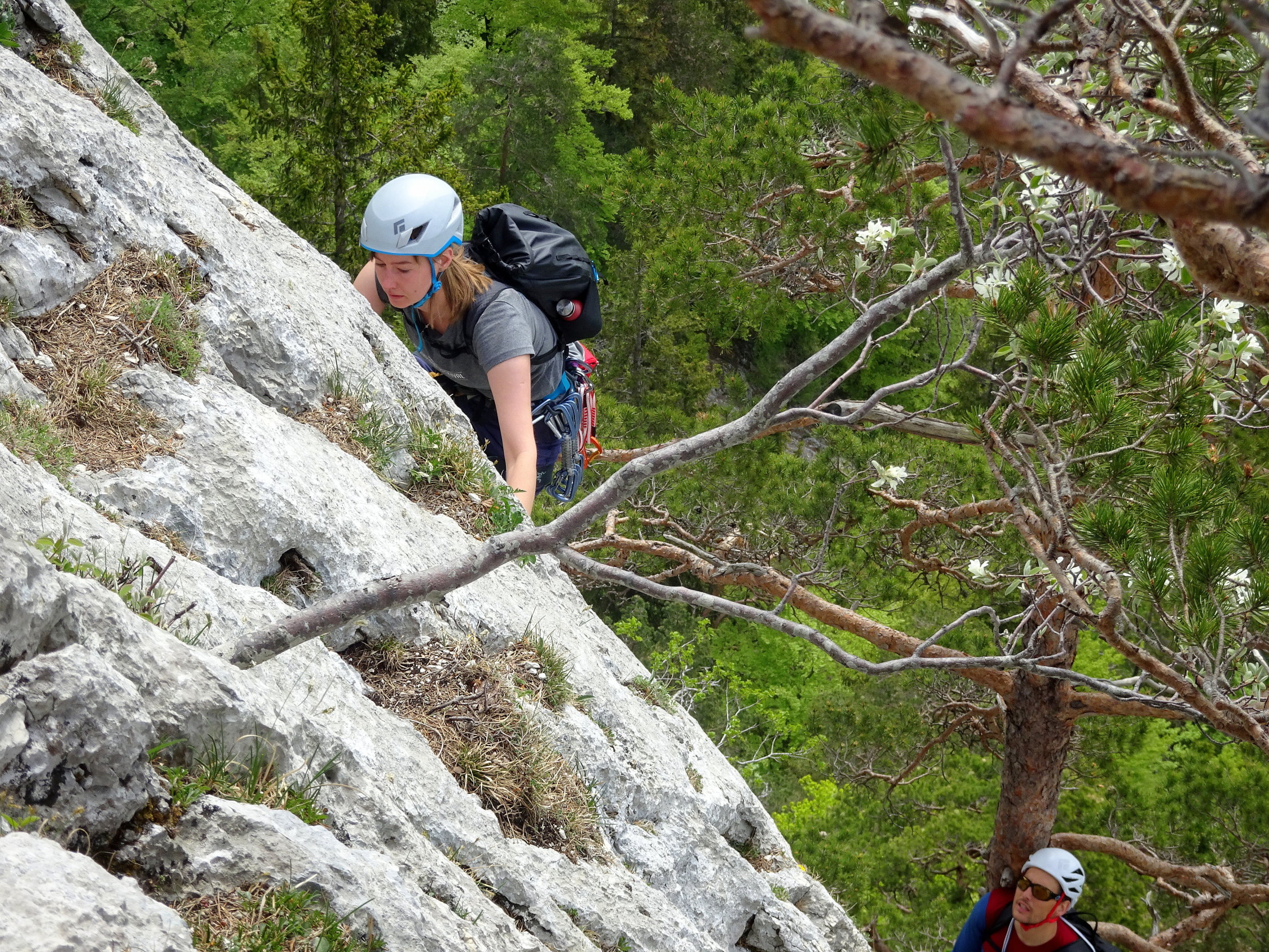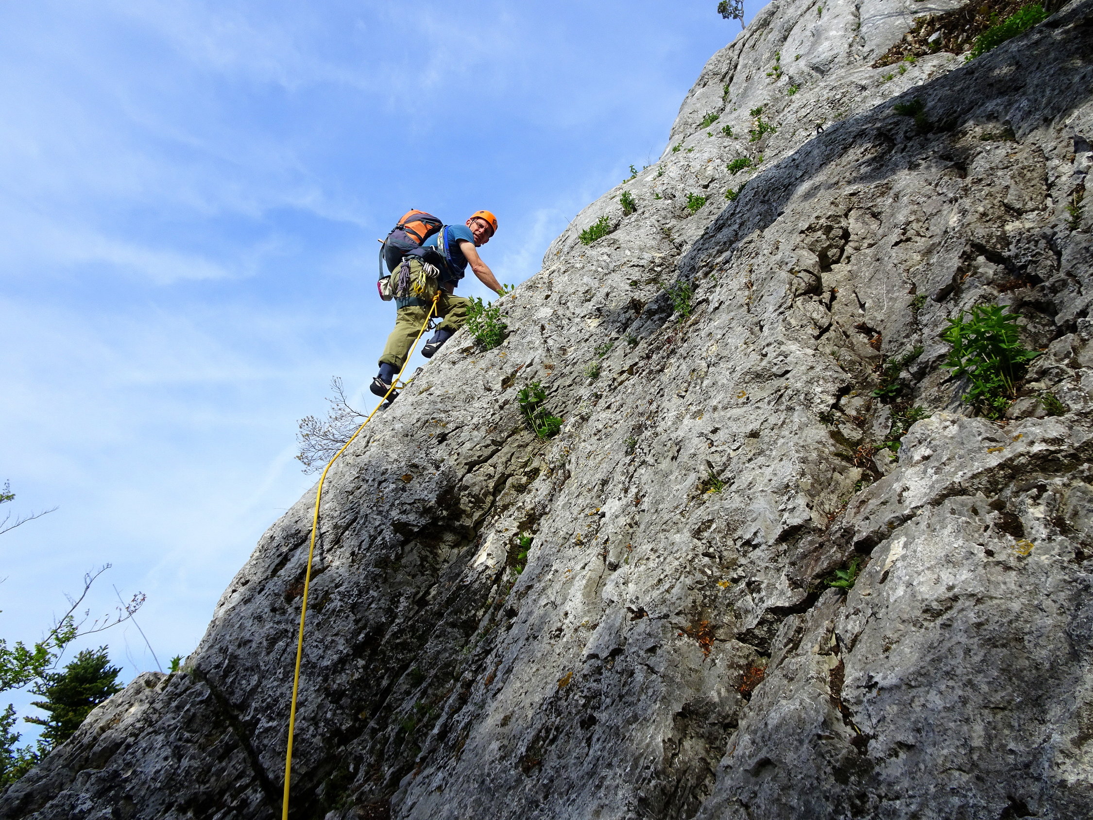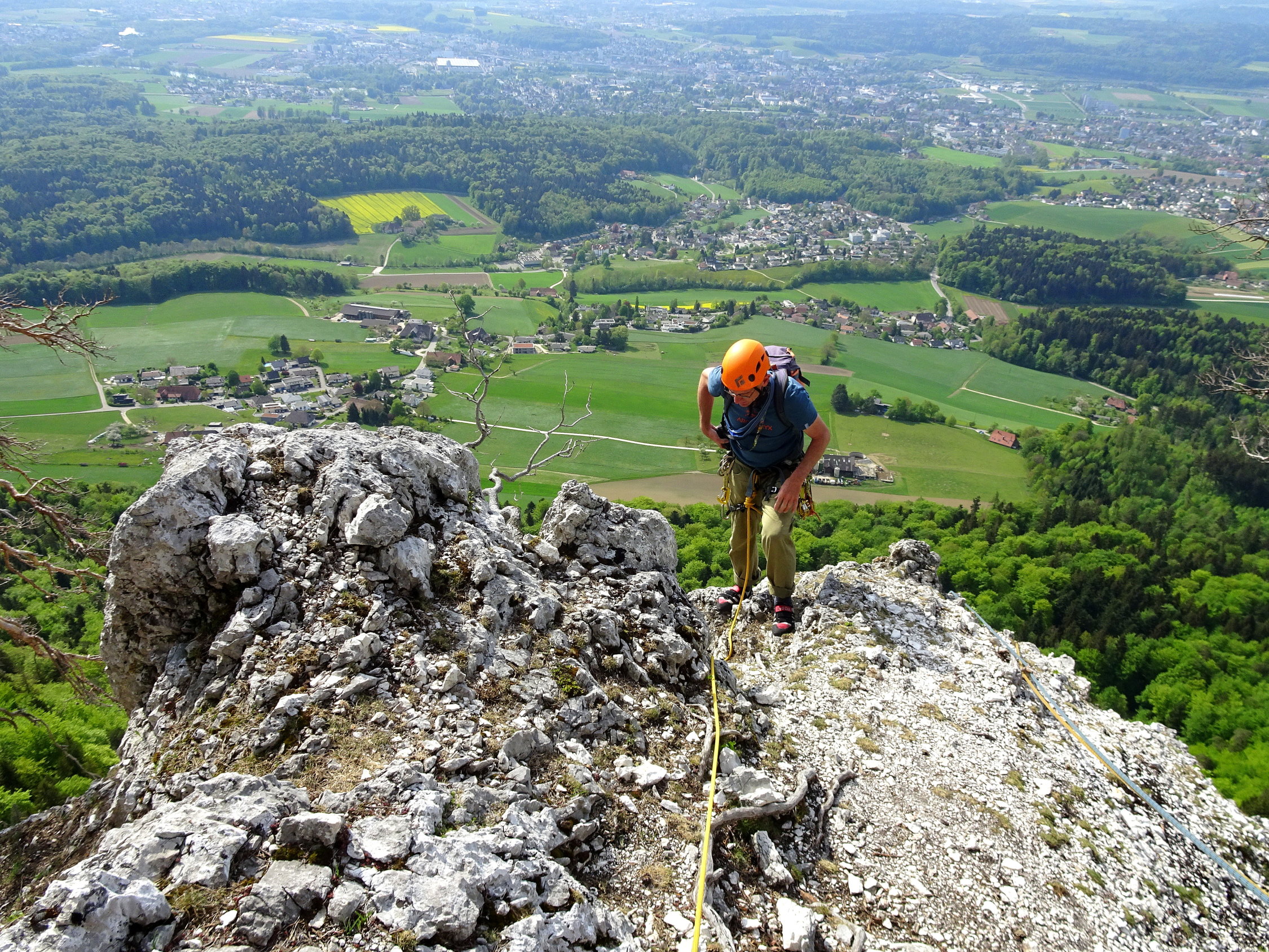 Beim begehen des Eulengrat denkt man unweigerlich an die alten Zeiten wo man mit groben Bergschuhen kletterte und als Zwischensicherung hie und da einen Schlaghaken fand, der manchmal wackelte schon nur beim Anschauen. Da gab es noch nicht die gut gesetzten Bohrhaken und die vorbildlichen Standplätze. Ehrlich, bei der heutige Begehung nach vielen, vielen Jahren habe ich mich sehr wohl und vor allem viel sicherer gefühlt.