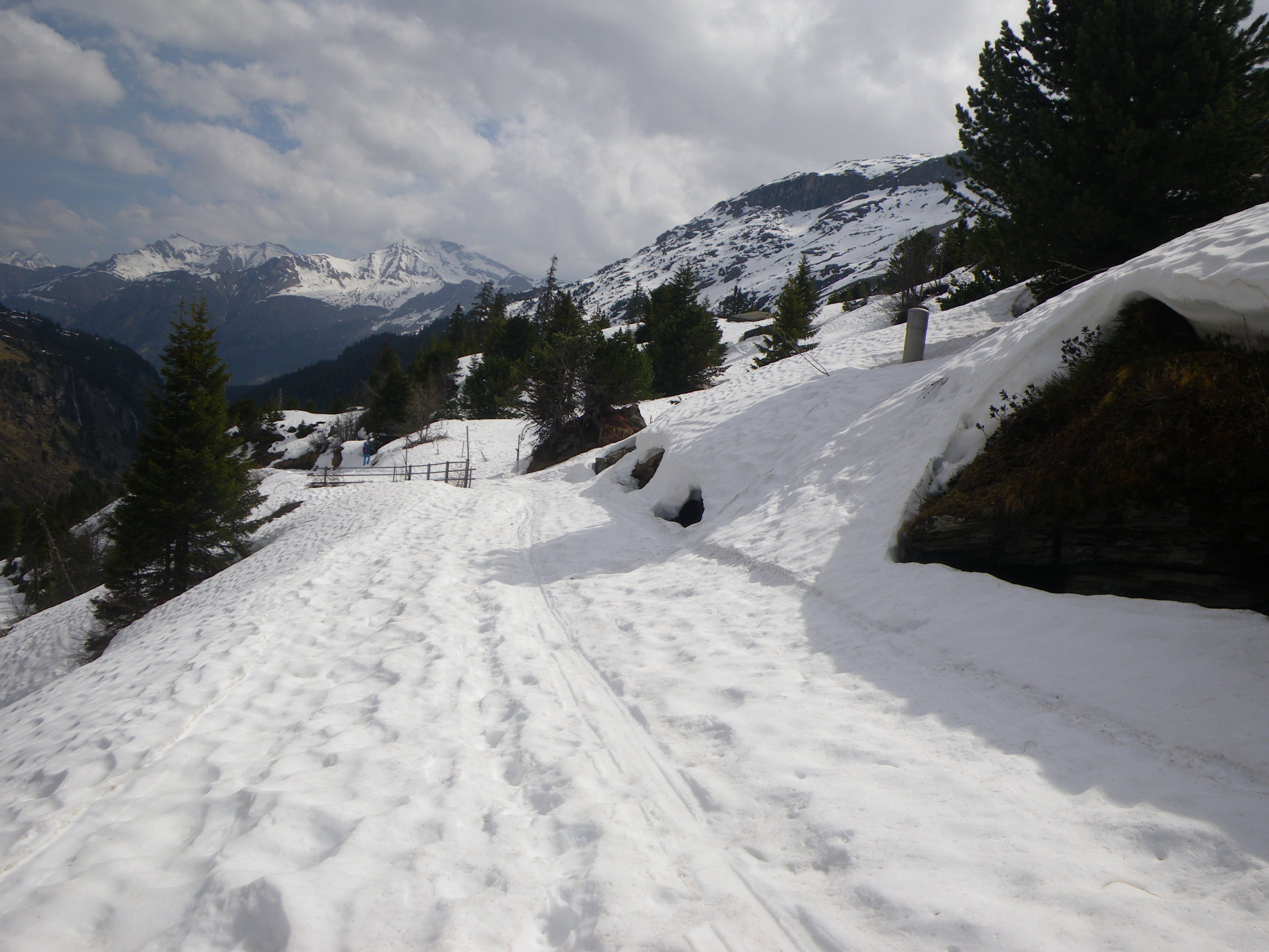 Schnee ab Parkplatz Berggasthaus Zervreila. Gesamte Tour sehr gut zu gehen. Die Tageszeitliche Erwärumg ist das Kriterium.