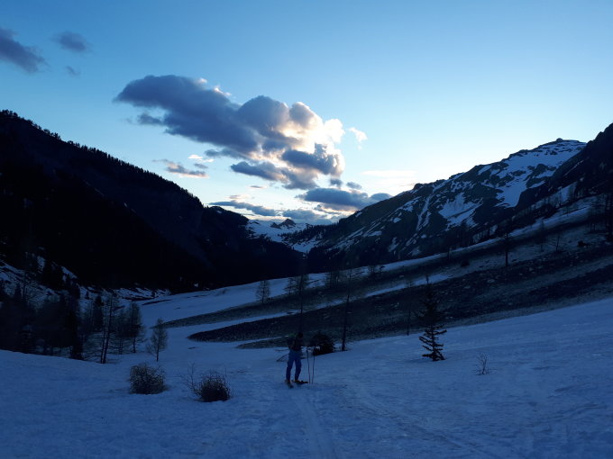 Départ à 6.15 d Iffigenalp (6°C). Jusqu'à la cabane, neige compacte mais faible regel, ensuite bon. Foehn fort (assez froid) sur tout l itinéraire, en particulier sur le glacier de Tené. Arrivée des nuages vers 10.30 pour la descente, mais pas gênant. Bon ski jusqu'à la cabane, puis neige collante. Ça skie jusqu'au parking. On a traversé le lac à l aller mais pas au retour. Encore faisable un moment. Une grosse moitié des gens sont partis de la cabane.