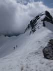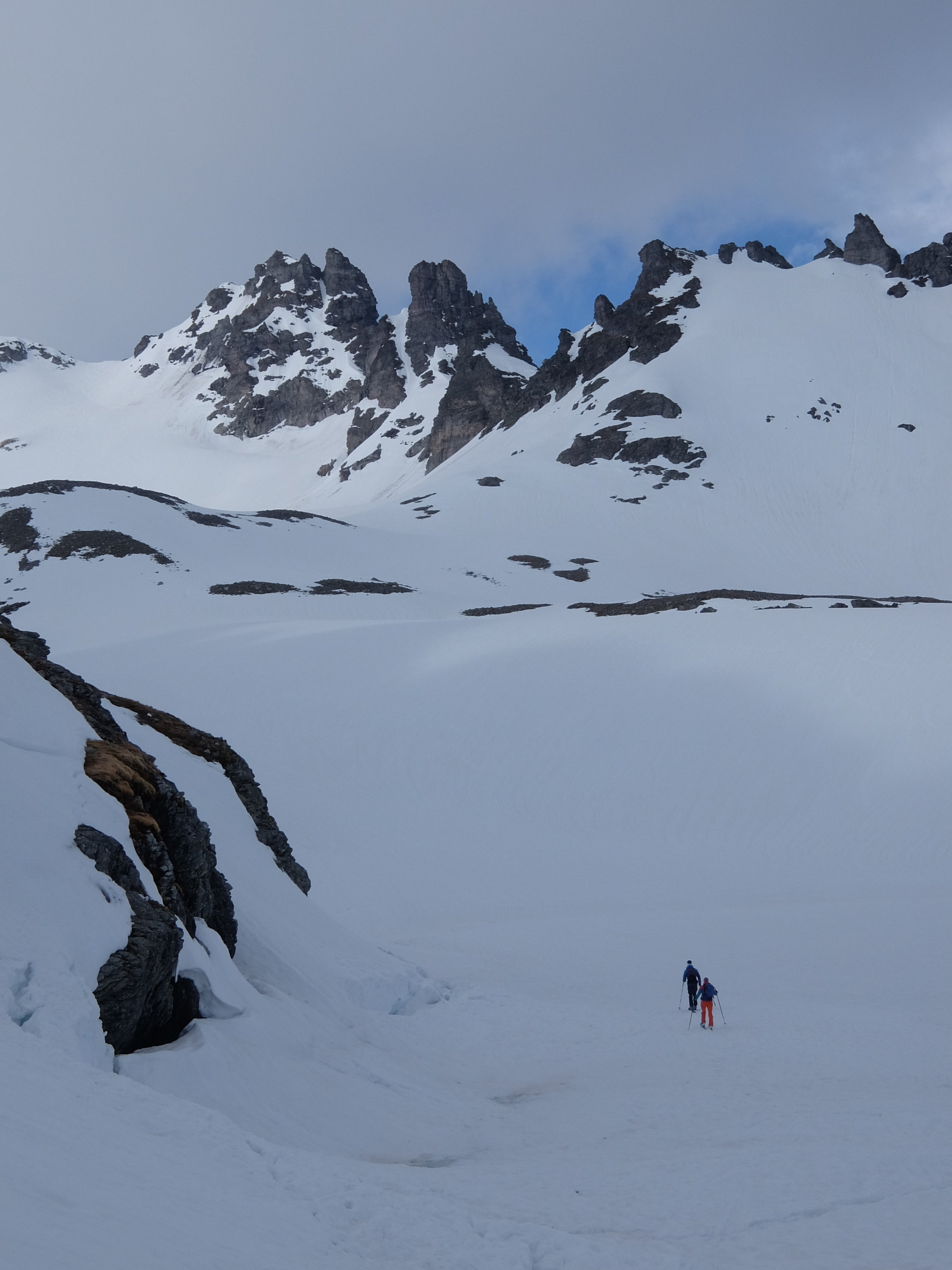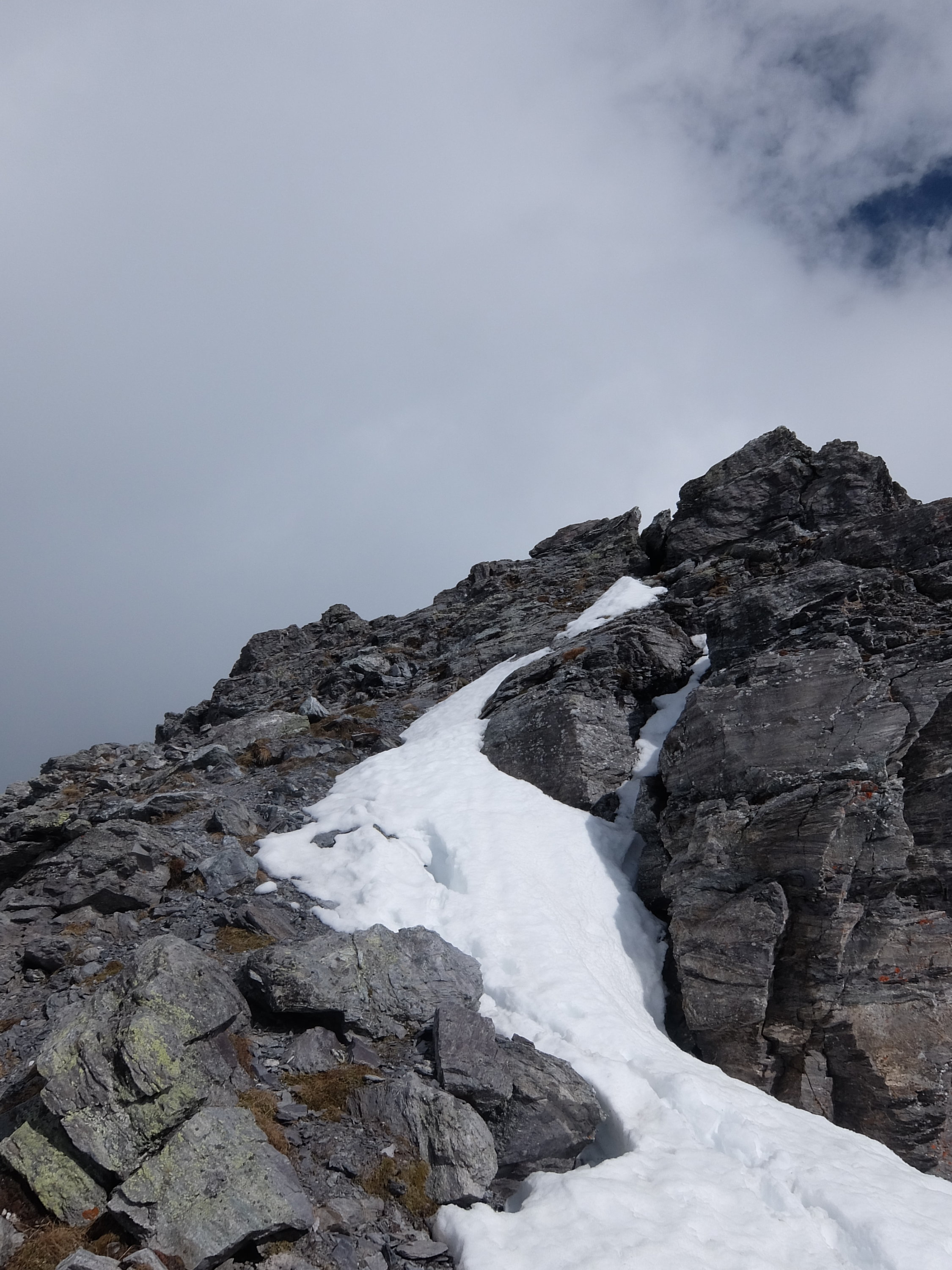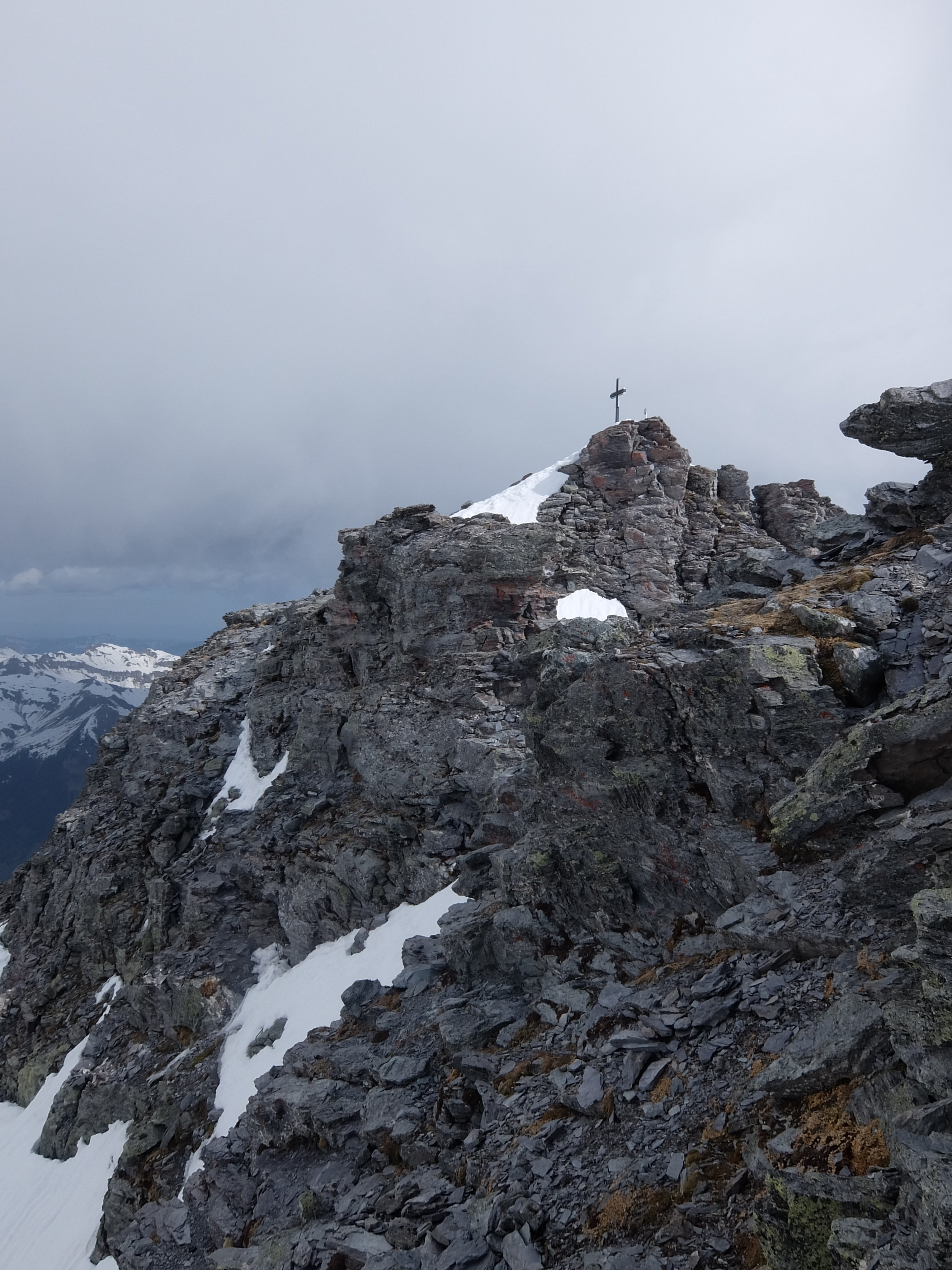 Ab Furt gleich mit Skis los. Die Pizolhütte ausgelassen, gleich rechts durch das Täli gequert. Wildseeluggen einige Meter aper, zu Fuß abgestiegen dann etwas mit Fellen abgerutscht. Auf schon weichem Schnee ohne Harscheisen zum Pizolsattel, zu Fuß auf meist trockenen Felsen zum Gipfel. Das Fixseil ist meist frei, nur in einer Rinne muss man auf Schnee queren. Ansonsten geht es auch direkt über den Grat (Spuren vorhanden, habe beides probiert).