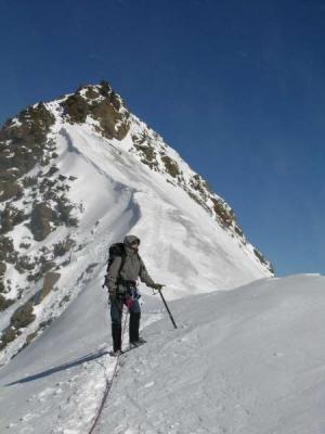 Trotz den massiven Schneefällen von Dienstag, eine problemolse Tour. Im Aufsteig über den SSE-Grat guter Trittschnee, und am Blockgrat problemloses steigen. Der Absteig zur Hohsaas gleicht einer Autobahn. Super Spur in cirka 30cm Neuschnee.