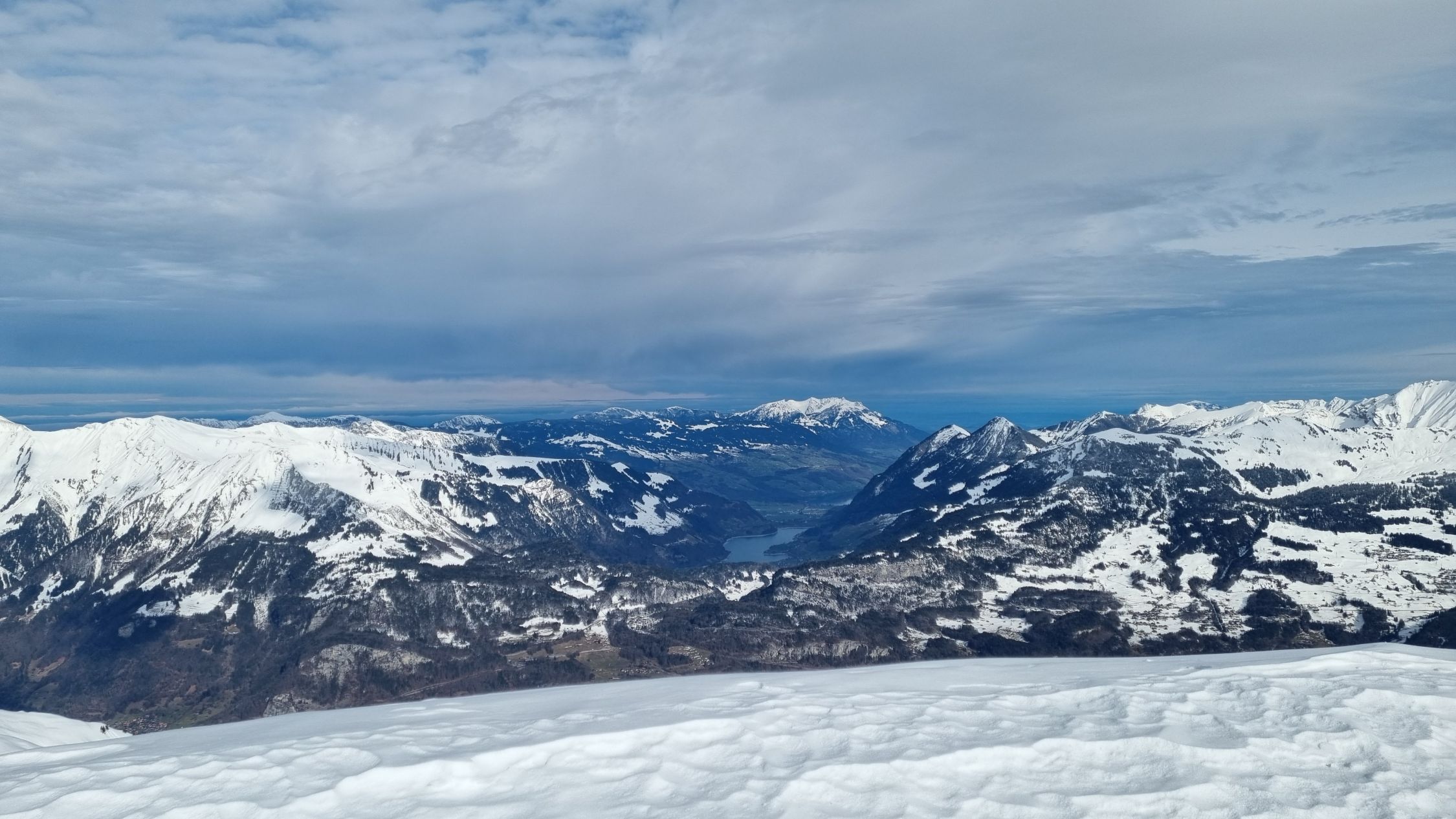 Genügend Schnee ab Schwarzwaldalp. Die Schlüsselstelle war heute der Parkplatz, der eine dicke, inhomogene Eisschicht aufwies. Danach auf guter Spur zum Gipfel. Unten eher Bruchharsch mit dünner Eisschicht als Folge des Regens, die aber mit der Sonne verschwand (bis gut 1600m), in der Mitte schwerer und am Mittag bereits feuchter Pulver, oben windbearbeiteter Pulver. Sehr warm sobald die Sonne kam. Oben aber ein zügiger und eher böiger Westwind. Die Abfahrt war nicht perfekt, aber ganz passabel. Inzwischen muss aber alles gehörig verfahren sein angesichts der Karawane, die hochkam.