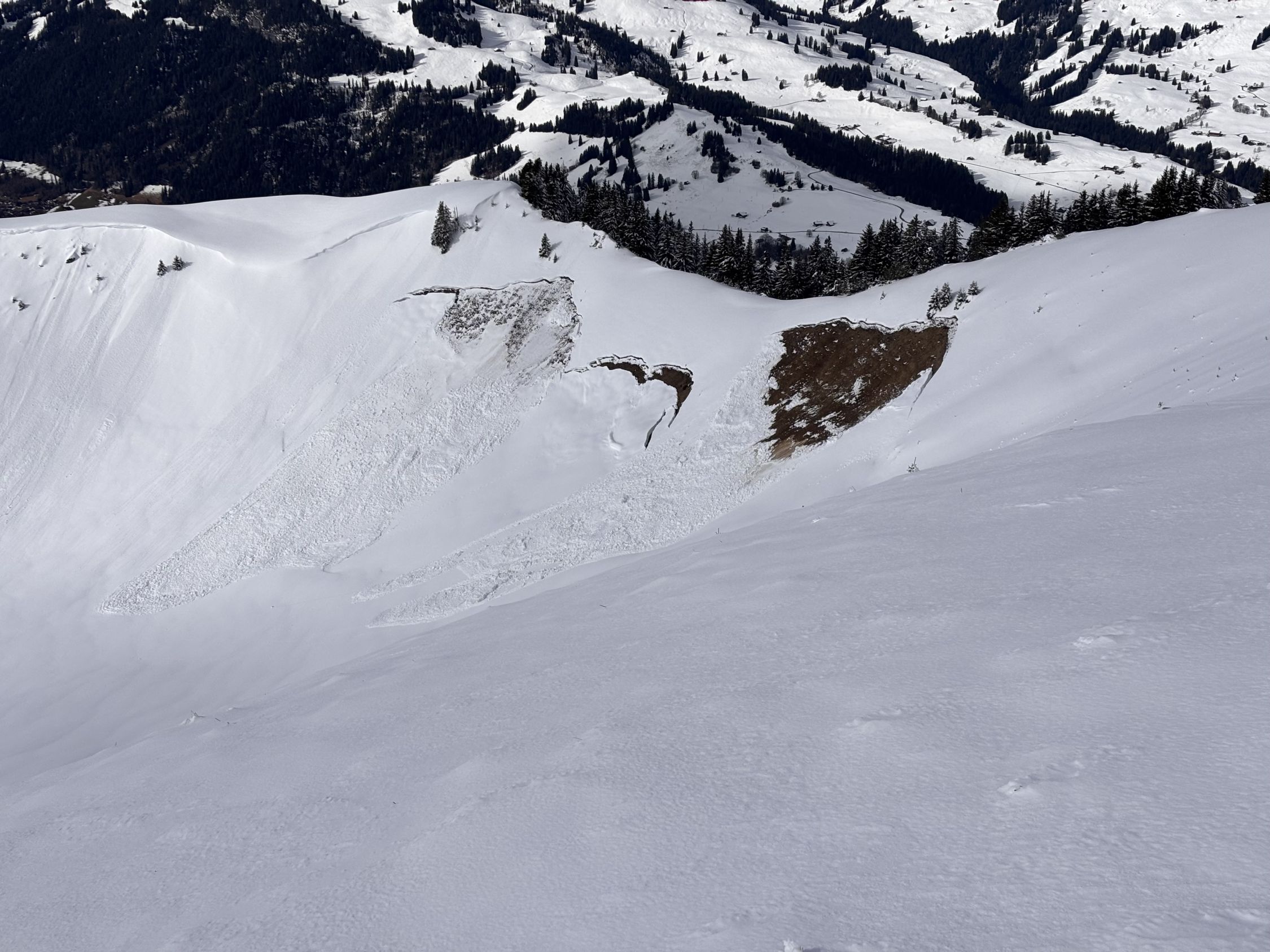 Hinweis zu Fotos: Wir haben (offenbar spontan ausgelöste) Schneebretter am Ost-/Südosthang des Bunschleregrat (nahe Pkt. 1912) gesichtet. Die Abgänge waren heute vor 10:30 Uhr schon dort...