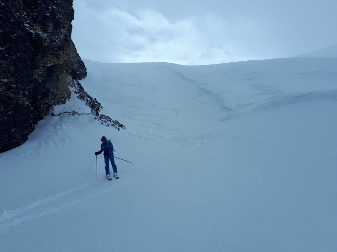 Parti avec la première benne. Bonne surprise avec 10 cm de poudreuse sur l itinéraire et peu de vent. Accès pour la Früstückplatz passe sans problème. Au dessus on joue à cache-cache avec les nuages. Très bon ski à la descente.. du coup on est descendu par l itinéraire de montée, puis remonté pour descendre ensuite directement sur les perches. De plus en plus couvert, mais quand même bonne visibilité. Super journée! Encore longtemps possible, il reste pas loin d un mètre d épaisseur sur le plateau.