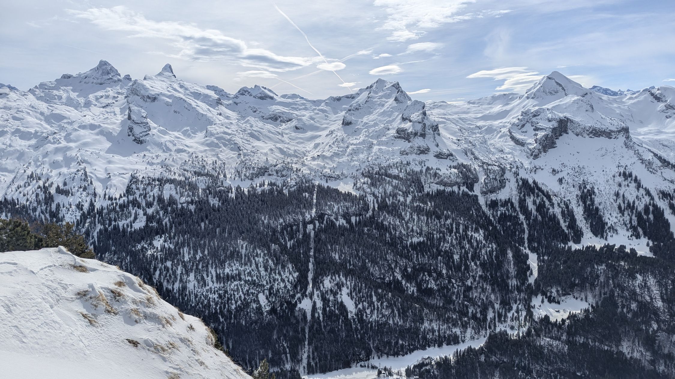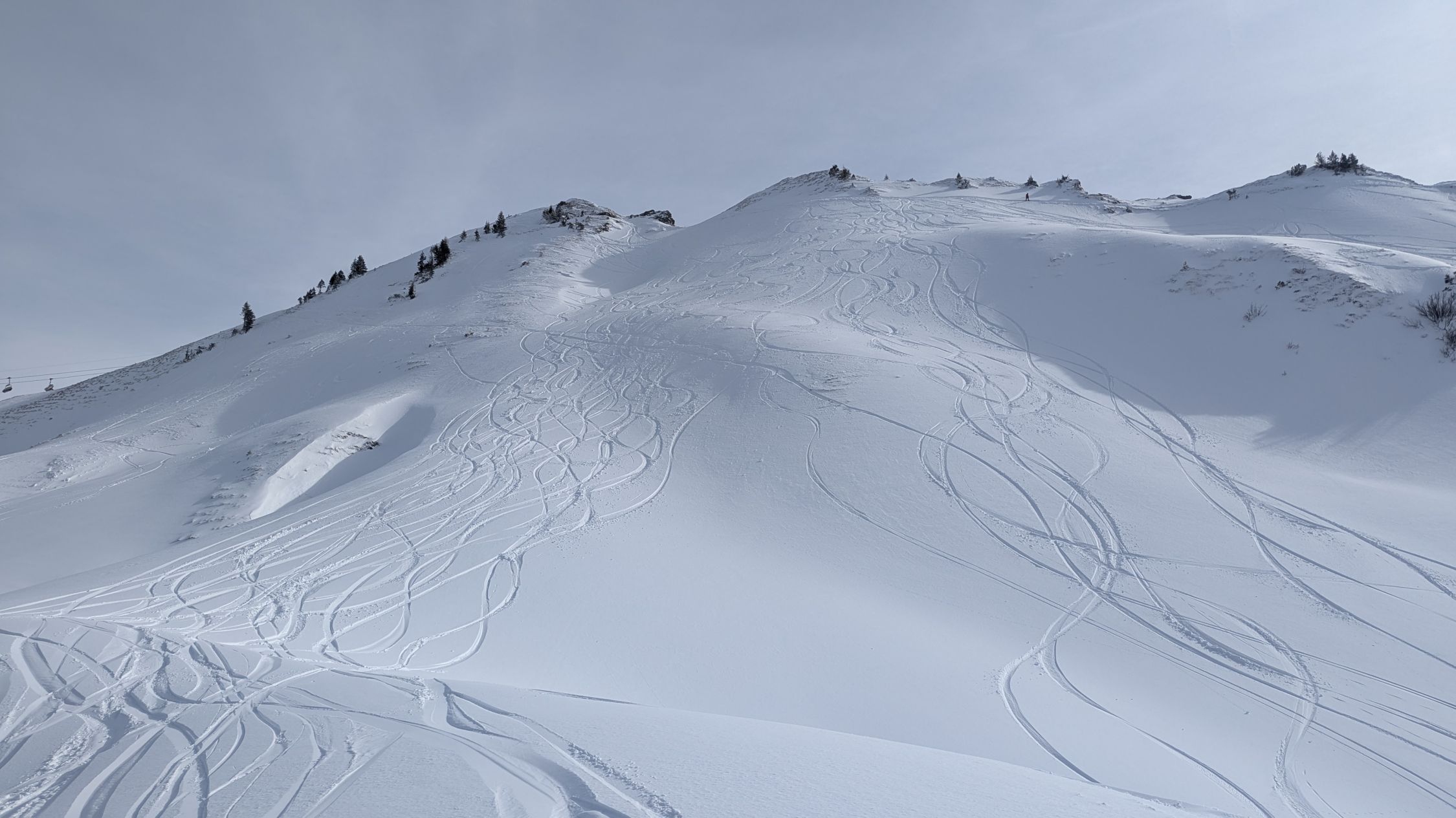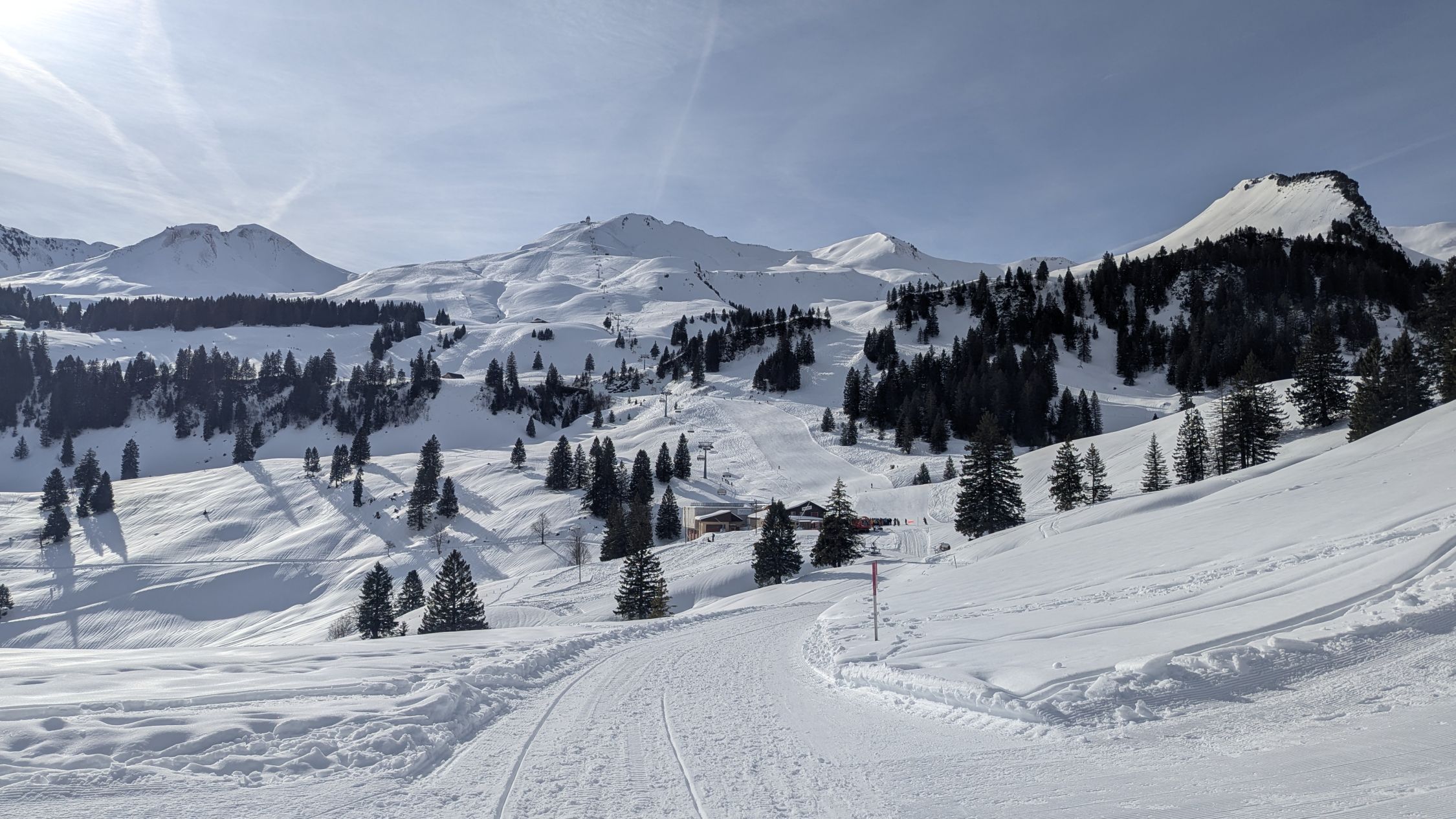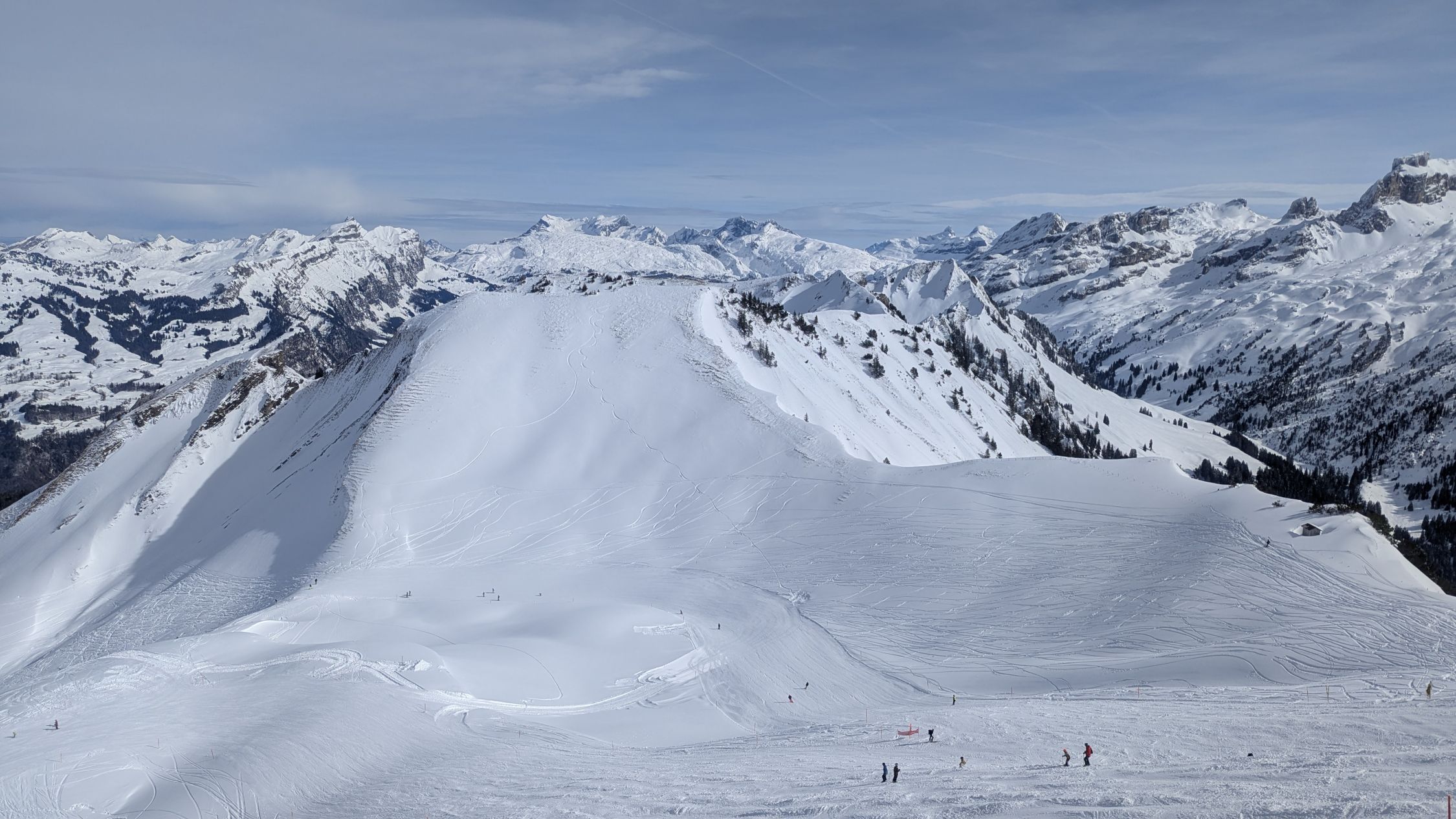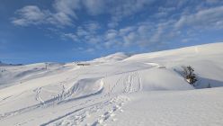 Die heikle Lawinenlage ließ mich heute mal etwas ganz anderes als Tourenziel auswählen. Kombiniert man von Stoos Fronalpstock und Chlingenstock, hat man gute Pistenoptionen. Ab Stoss war erstmal alles pickelhartgefroren, oben dann Bruchharsch und so im Bereich 1600-1700m kam dann windgepresster Pulver dazu. Am Mittag dann auch kräftige Sonne und tendeziell nasser Schnee. Abfahrtsvariante NW-Rücken Chlingenstock von vielen Pistenfahrern gemacht, dem habe ich mich angeschlossen und so ca 400Hm doch ganz nette Schwünge. Ab 1500m dann eher Bruchharsch und weniger Freude. Gut das die Pisten da waren. Huser Stock war auch befahren.