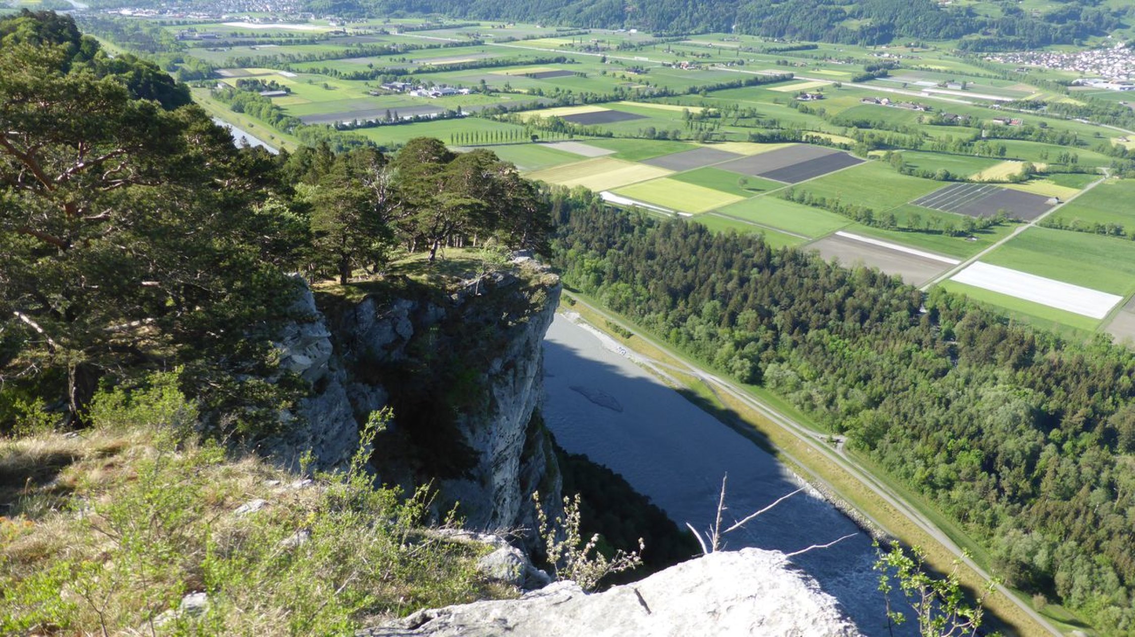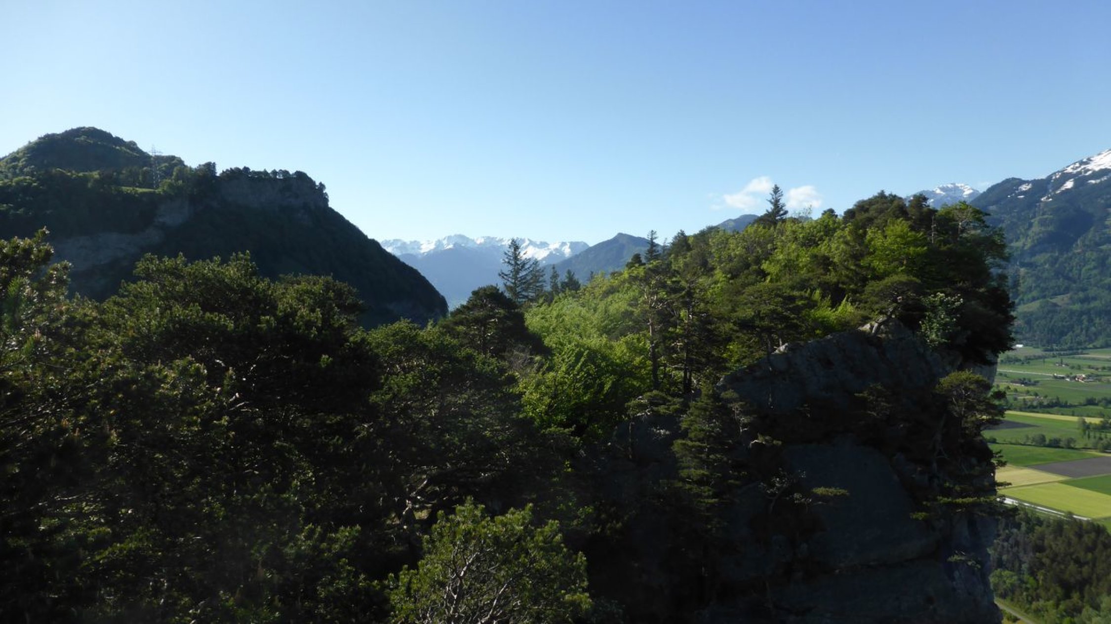 Die eindrücklichen Felsabbrüche vom Fläscherberg mit der markanten Führung der Starkstromleitung habe ich immer wieder von der Autobahn aus gesehen. Das Gebiet zog mich schon des längeren an. Jetzt ging es sich eindrücklich aus! Uf http://www.spaceglider.at/touren/bsm.htm sind no a paar Fötile …