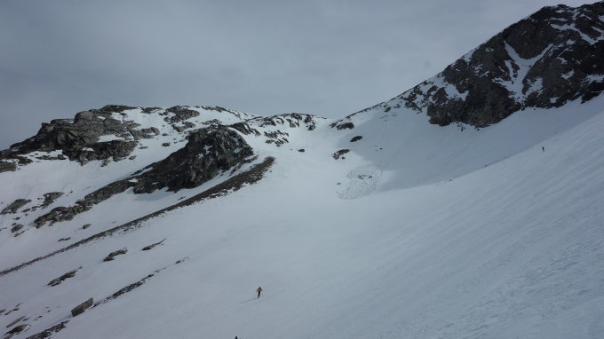 Tipp: Unterhalb 1900 besser links halten (westl von Bäreck,in Karte verzeichnet bei Pkt 1848). DAnn ca 1h Ski nach Hintertux tragen. Man kann trotz Sperrung die Mure queren (Wanderweg gesperrt). NICHT vorher absteigen. Eine ca 200m vor Hintertux eingezeichnete Brücke existiert nicht mehr (Wanderweg)