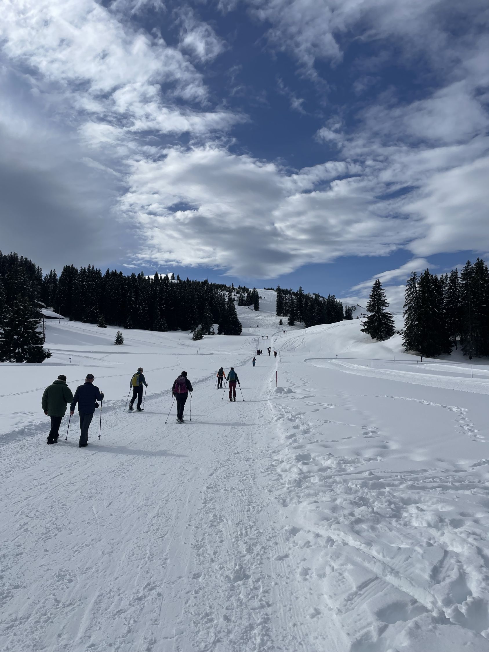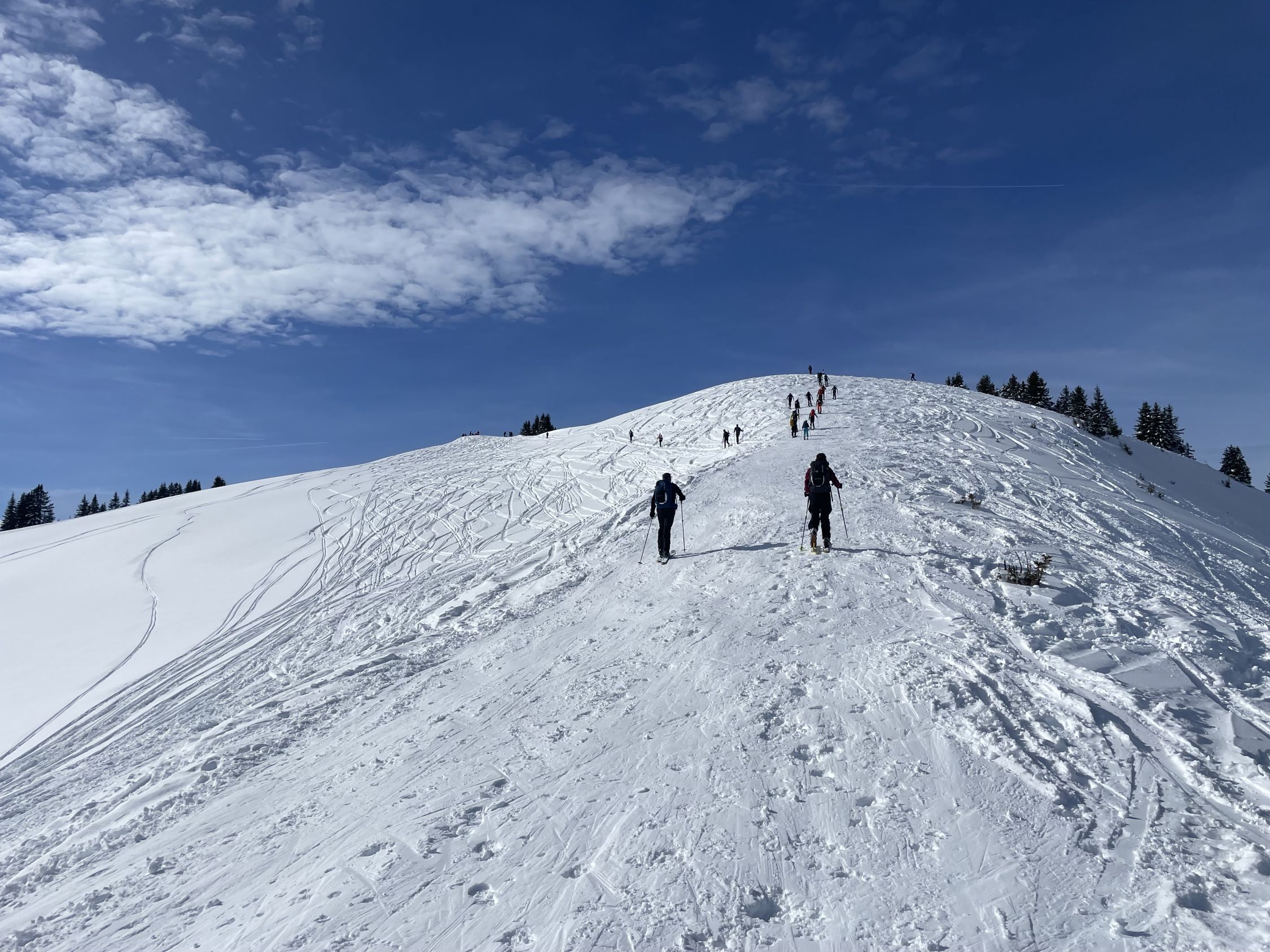 Leider hat es mir den bereits erstellten Eintrag statt publiziert schlicht geschluckt :-(, das ist etwas ärgerlich. Hier kommt daher die kurze Zweitfassung: sehr viel Leute heute auf dieser kurzen und objektiv sicheren Tour. Objektiv sicher war heute ein sinnvoller Wert, und die Abfahrt bot mir entgegen der Erwartungen sogar noch ein paar Pulverschwünge, darum dunkelgrün trotz Volksauflauf. Immer lohnend!