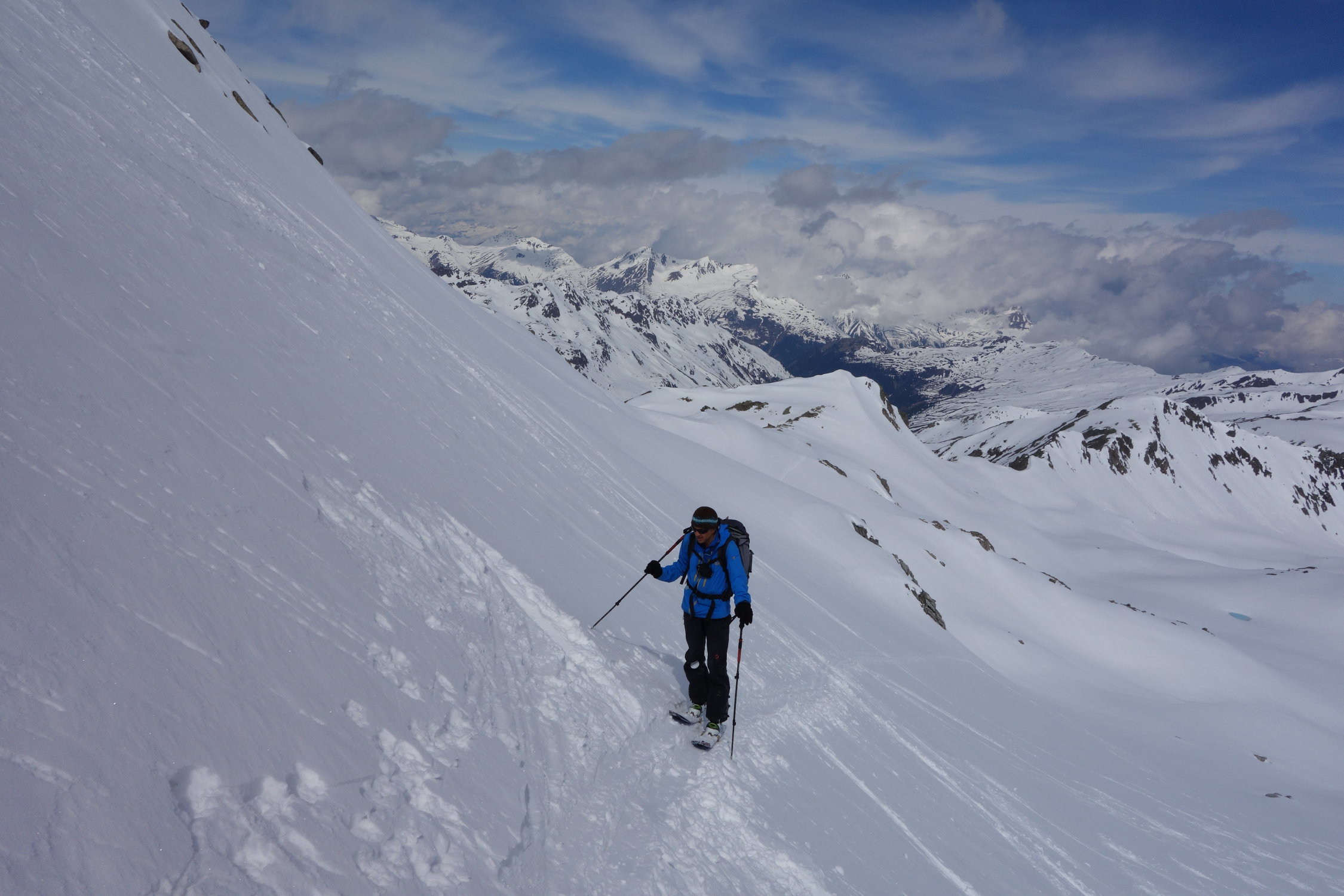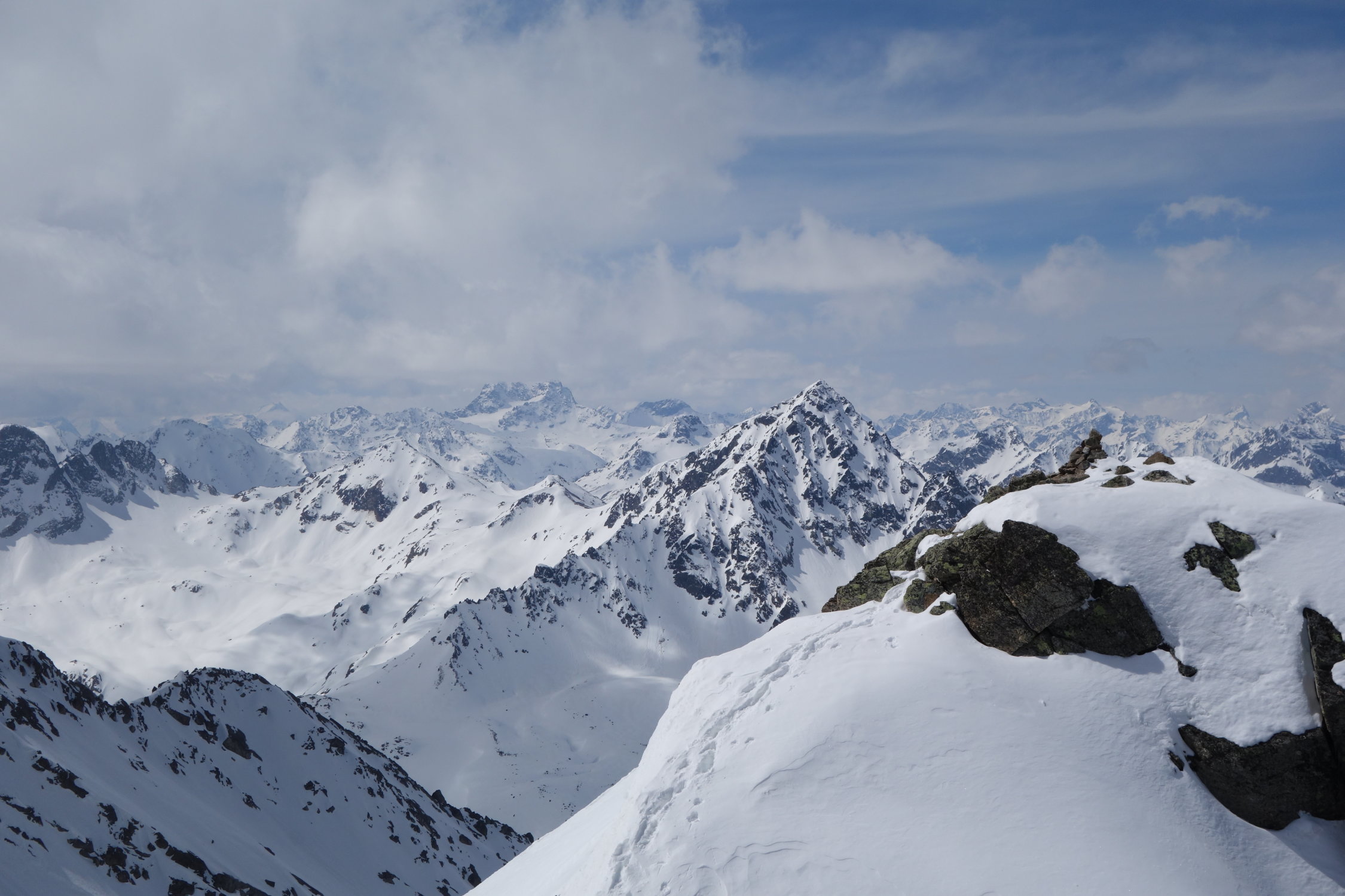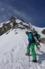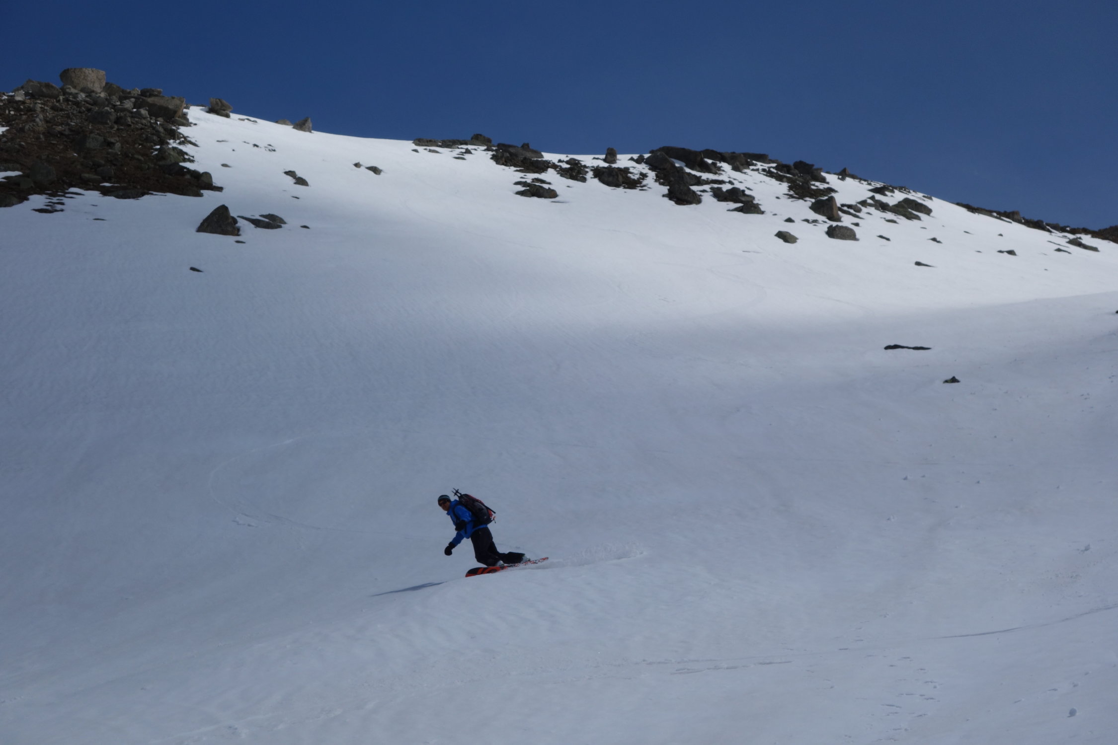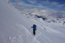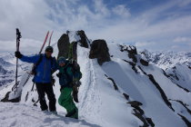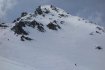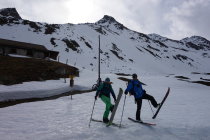 Start bei der Wägerhütta um 8:45 auf festen Firn mit Harscheisen.Passstrasse bis Hospiz etwa offen. Die hohen Temperaturen der letzten Tage hatten zur Folge, das uns um dieses Zeit bereits die ersten Abfahrer etwas enttäuscht entgegenkamen, da alles noch pickelhärt war. Am Gipfel um ca. 11:30. Aufstieg mit SB-Boots ohne Steigeisen im guten Trittschnee. Abfahrt 12:00 genau richtig. ca. 1-2cm aufgefirnt. Wir sind nordseitig abgefahren und haben noch etwas Pulverauflage gehabt ca. 5cm, daher kann man auch im steilen Gelände einfach Bögeli fahren =)