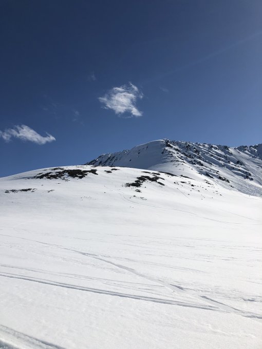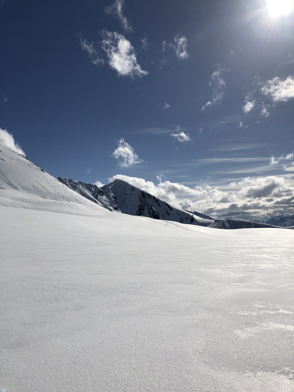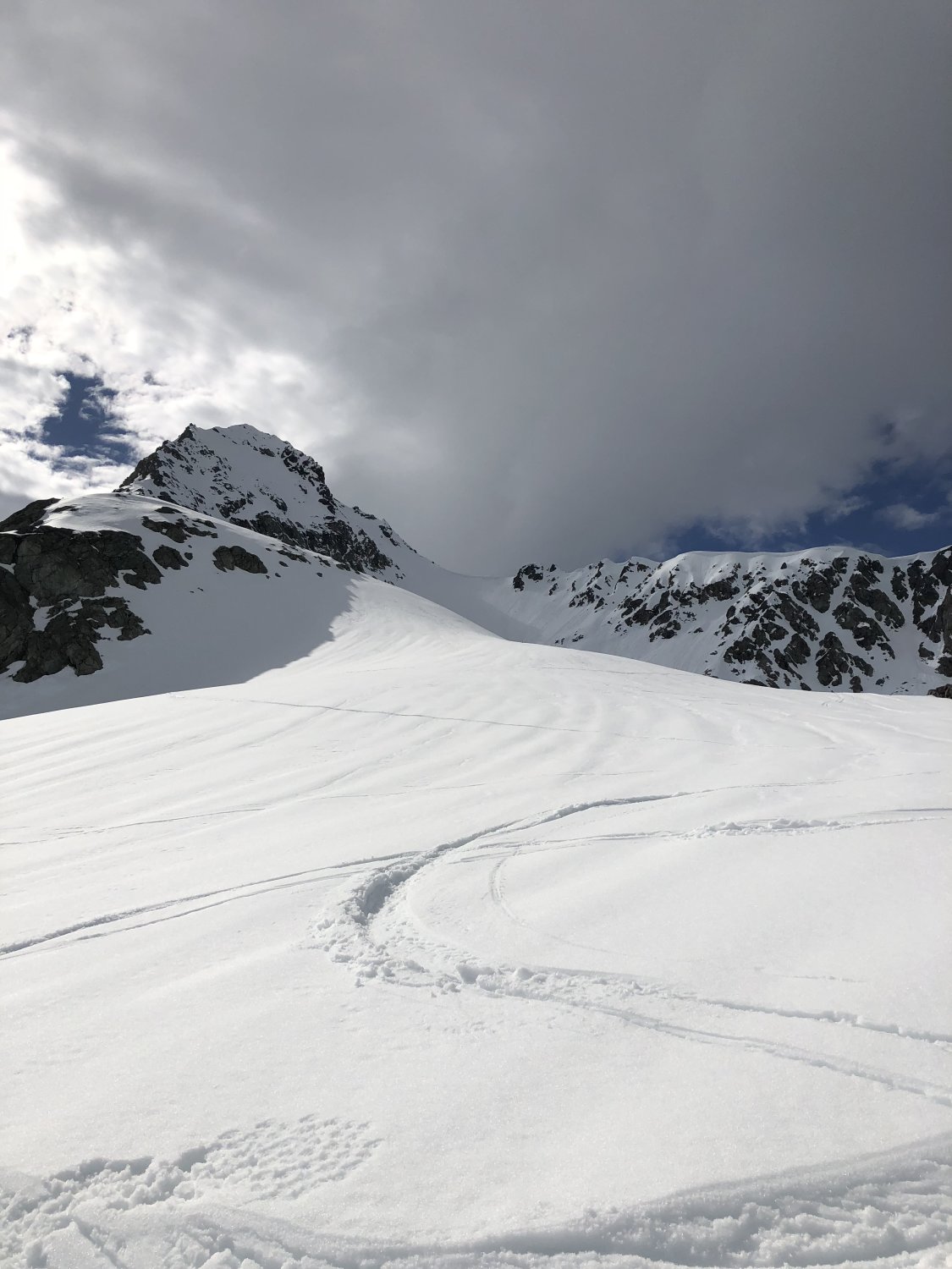 Pulver und Sulzschnee ab Bjørndalpass und weiter Niemand bis zum Stetinden, sehr viele Leute (>50)