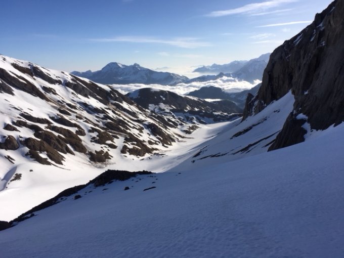 Die Abfahrt um ca. 9:30 über Wildhorn- und Tungelgletscher war dann schlicht perfekt in leicht aufgeweichtem Neu- bzw. Sulzschnee ("ausgezeichnet"). Ab Wildhornhütte dann leider nur noch Bremsschnee, aber immerhin noch bis zur Iffigenalp möglich ("weniger gut"; die Gesamtbewertung "sehr gut" ist nicht möglich).