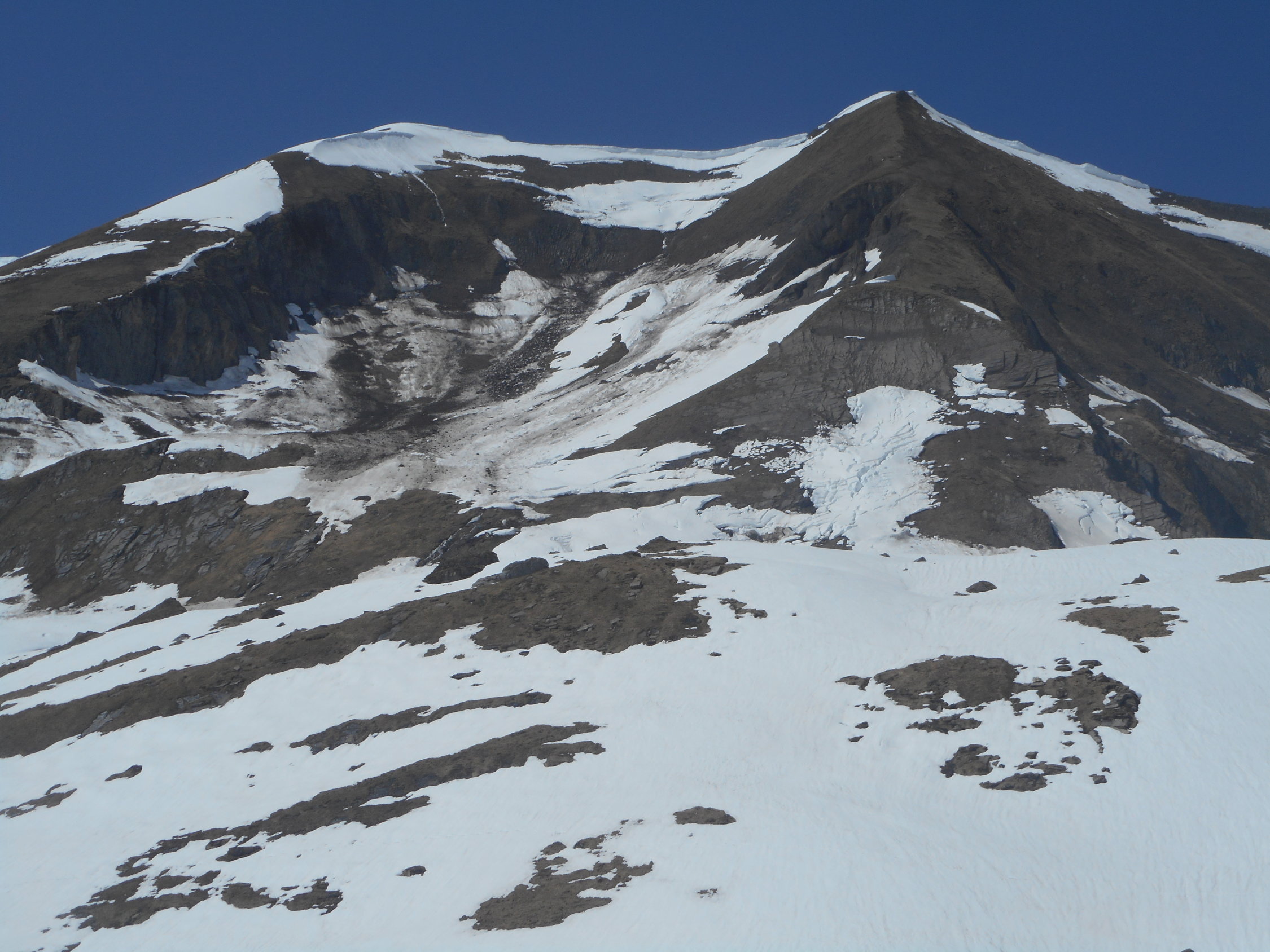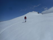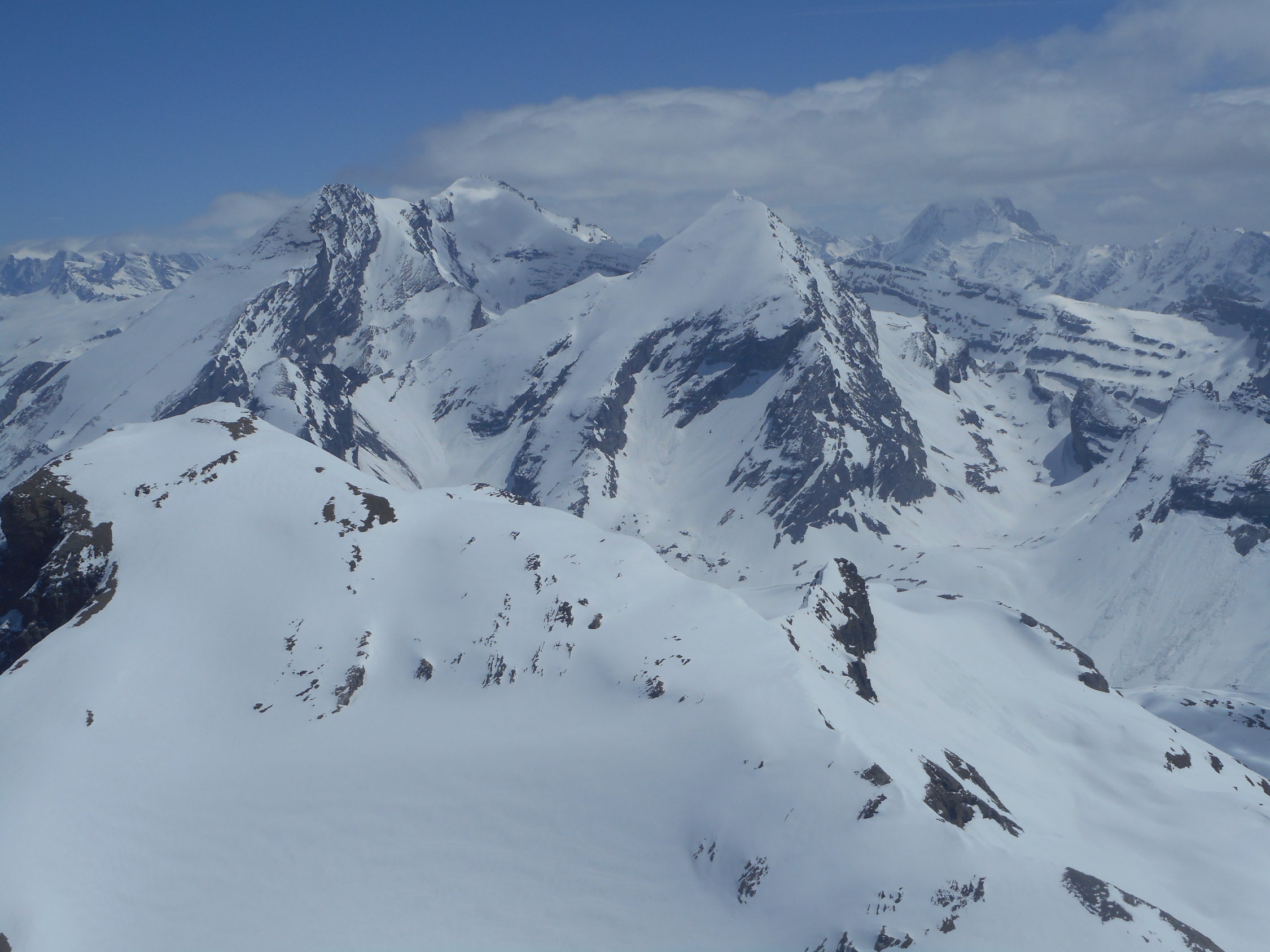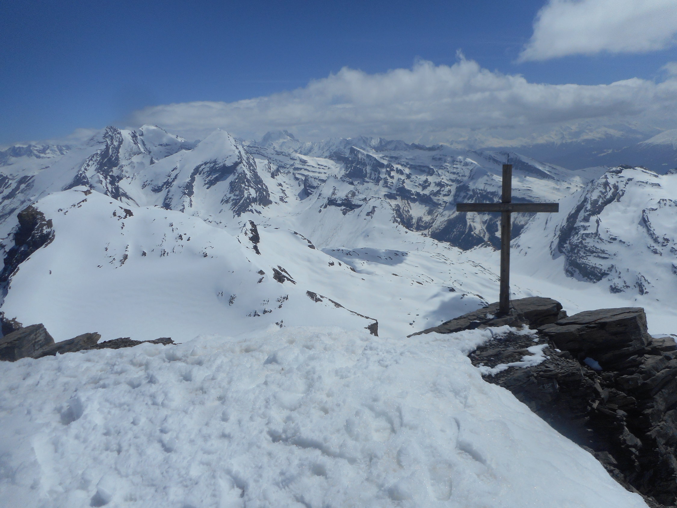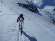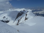 Wetter: Gutes Tourenwetter, aber für die Jahreszeit viel zu warm. Nicht jammern, wir müssen das akzeptieren, und der Mensch muss lernen, das die Natur ihm den Weg aufzeigt. Es war föhnig, und die Schneedecke hat`s bis zum Frühstücksplatz nicht gefroren. Auf dem Wildstrubel Gipfel windstill und mild.