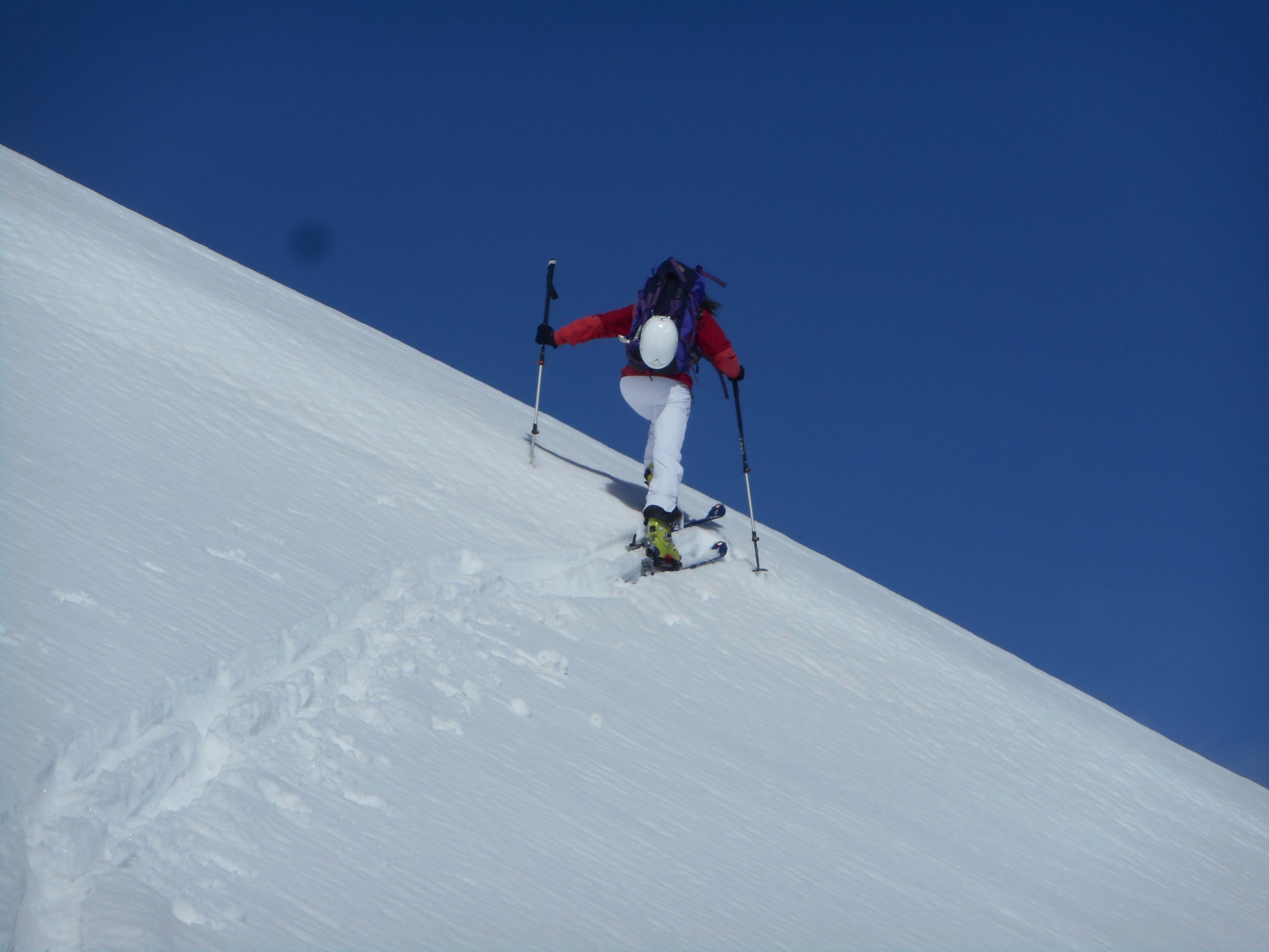 Aufstieg: Die Traverse zum Frühstücksplatz ist gut zum Gehen. Danke für die ausgezeichnete Spuranlage.