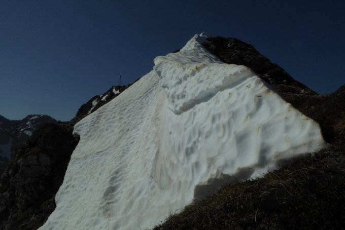 Bin nicht von Reichenbach, sondern von Schöllang durch den Eybachtobel, Entschenalp, Wännele hoch. Alles gut zu gehen kurze Altschneeberührung vor Wännele und Ansatz NW-Rücken zu der Latschengasse hoch.