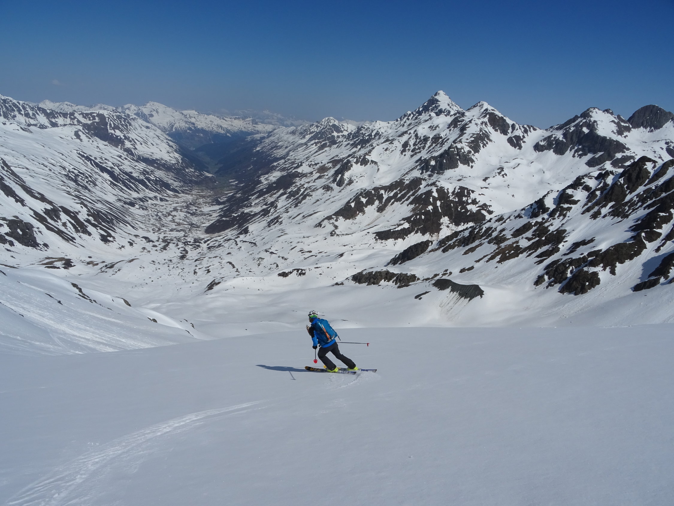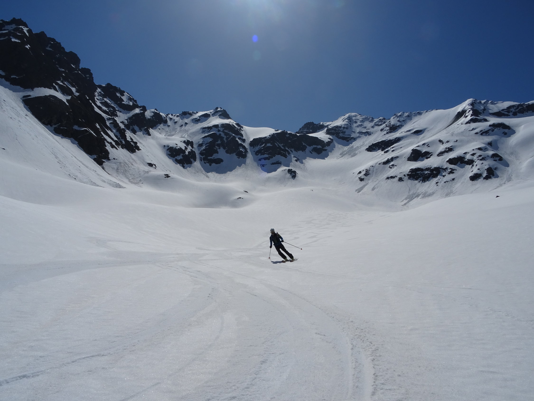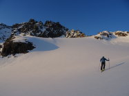 Zum Vadret: Linke Rinne etwas Schnee auf dünner Eisschicht.
