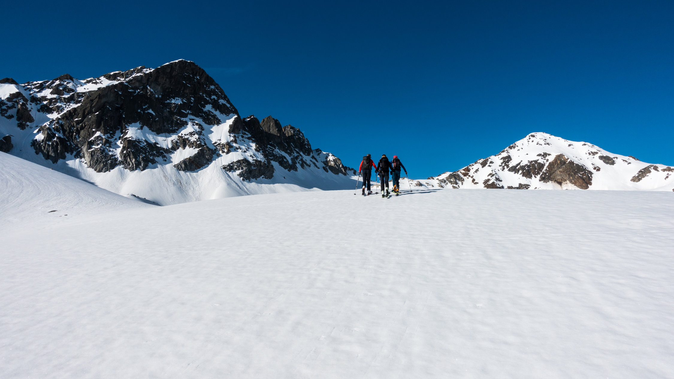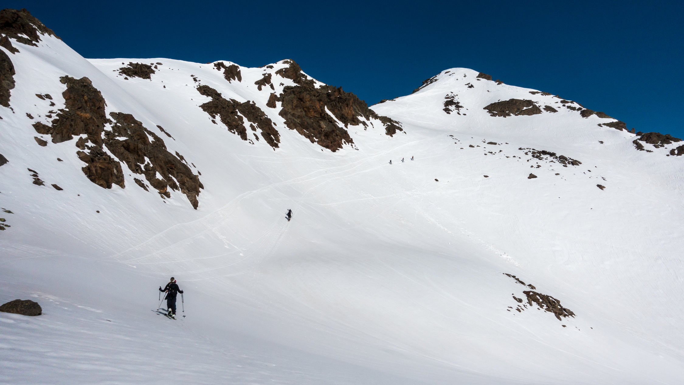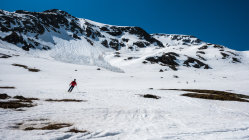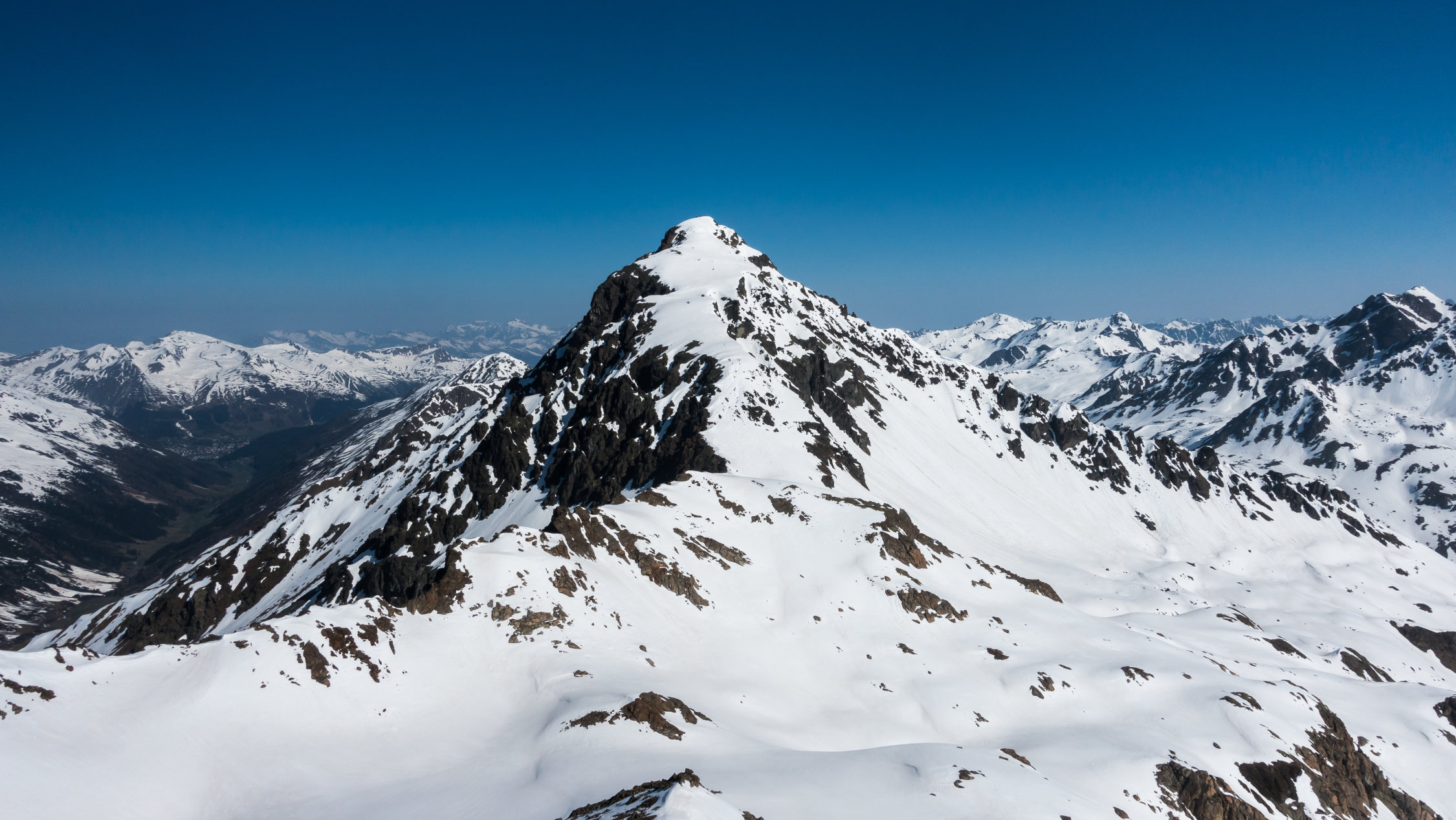 Perfekter Traumtag! Start um 7 Uhr bei der Flüelapassstrasse bei + 4°, windstill, wolkenlos. Gut gefrorene Schneedecke. Wunderschöner, einfacher Aufstieg bis zum Gipfelhang, dort ein paar giftige Spitzkehren in steilem Gelände bis zum Gipfel, ohne Harscheisen. Abfahrt vom Gipfel um ca. 10 Uhr bei perfekten Verhältnissen, Nordhänge noch hart, Südhänge weich, dazwischen genau richtig. Super Sulz bis zur Passstrasse.