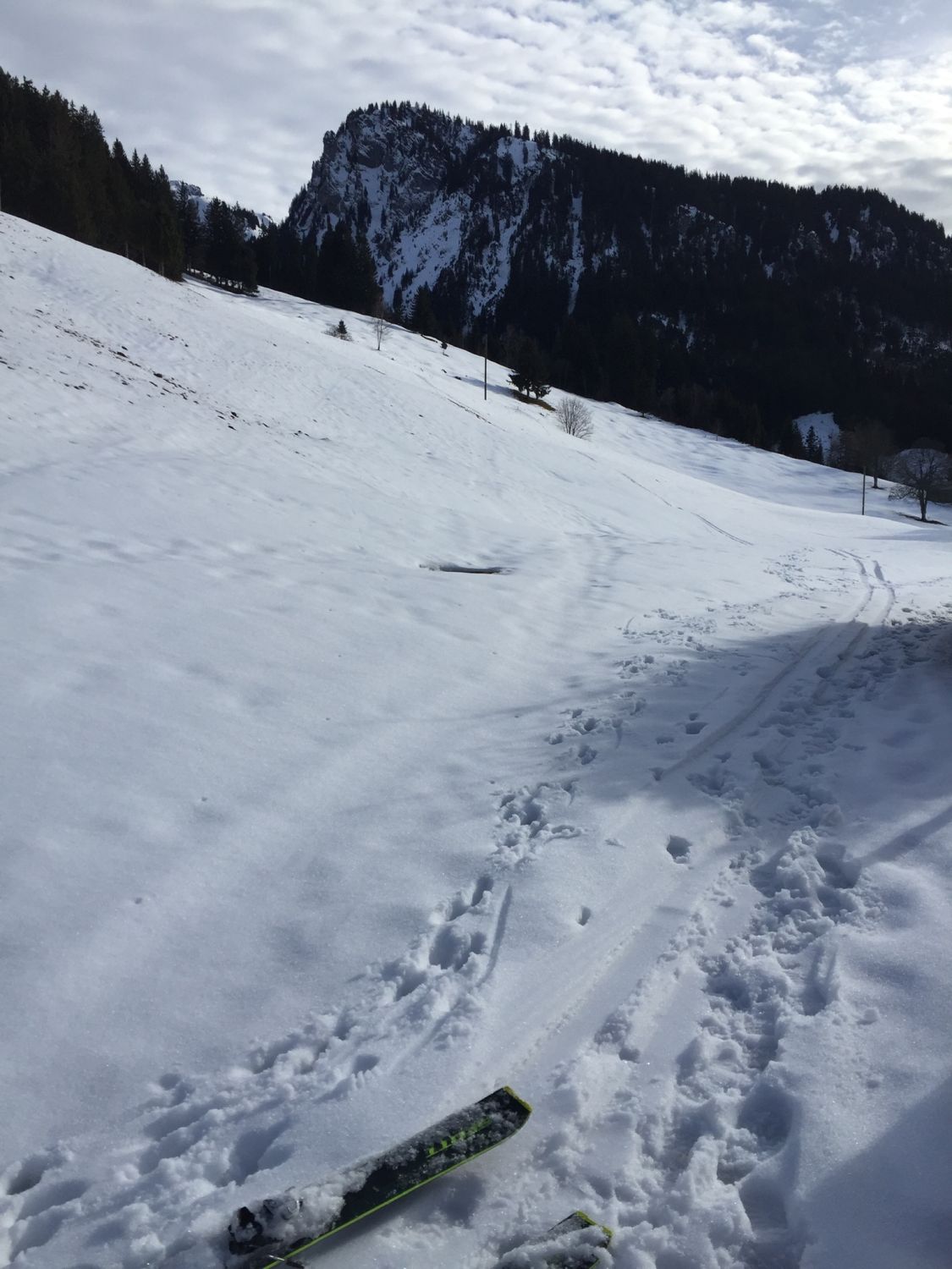 um 8 schon warm . Schnee ab 1200 schön gesetzt und gefroren. Die schönen Hänge oberhalb Faltschen sind gut. Frühjahrsfirn lässt grüssen. Durchschlupf und Weg üppig eingeschneit. Abkürzungen sind abgesperrt . Im Aufstieg kam ab 1600 krustiger Teil. Ab 1700 NW pulvrig und ab jetzt Stollen. Viel Triebschnee eingeblasen Gipfelhang direkt. Föhnig auf dem Gipfel. Abfahrt schwerer Pulver ungefähr der Aufstiegsspur entlang. Im Kessel schattig Pulver. Die Forststrasse jetzt Nass runter. Hänge Faltschen Nass tragend schön zum Fahren.