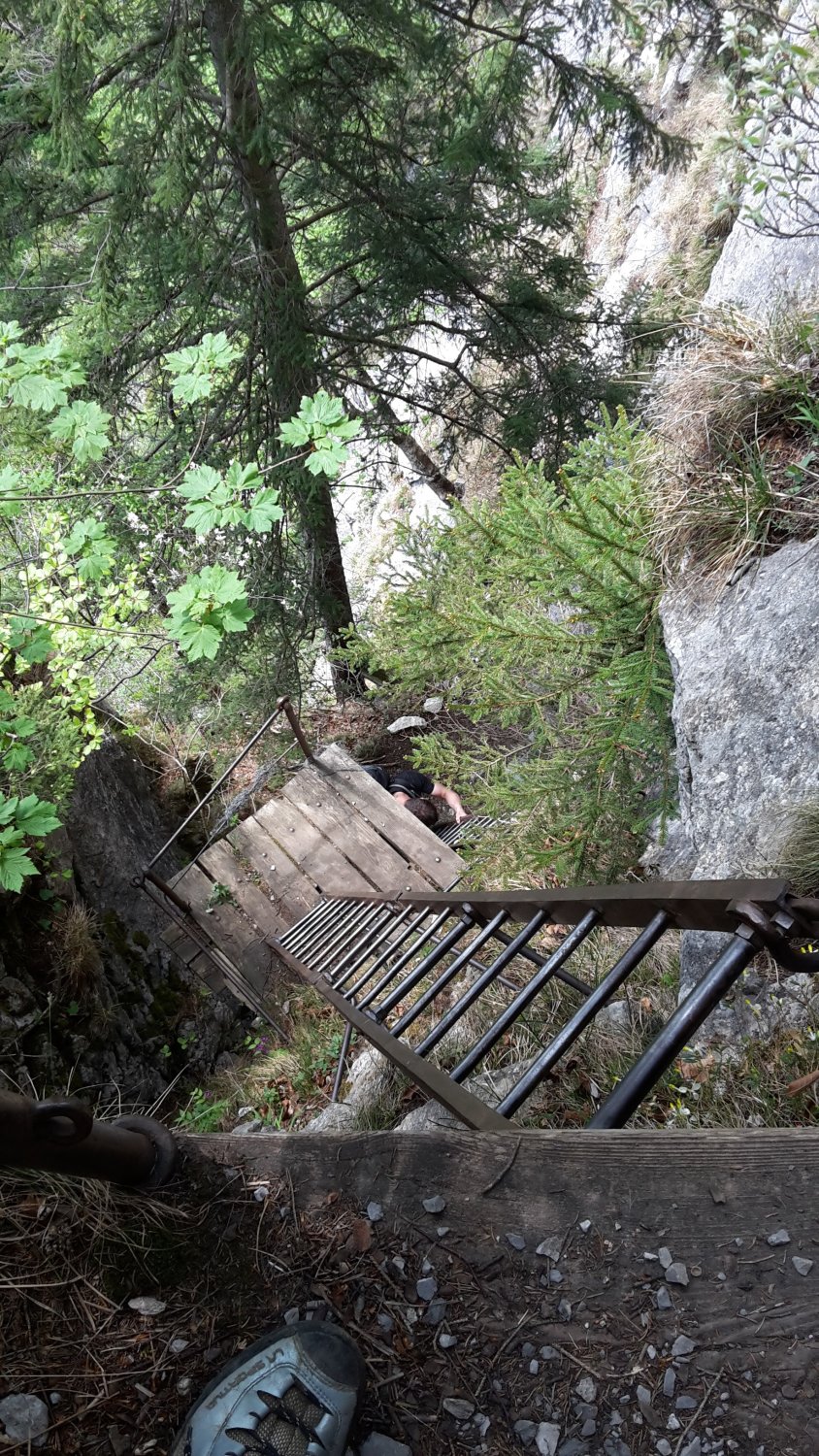 Gute Verhältnisse, alles trocken. Routenfindung nach dem Klemmblock nicht so einfach, fand ich. Wichtig: nach dem "rausklettern" aus der Klemmgrube mit Gesicht zur Wand drehen, dann rechts das Couloir hoch auf die gehauenen Tritten. Danach nicht steil rechts, sondern eher leicht links halten Querung zu einem Grashang. Diesen auch eher links haltend norwestlich hochsteigen mit nur wenig Höhegewinn bis zu einem toten Baumstamm mit Steinmann. Nicht zu weit hoch steigen! Rechts am Steinmann vorbei steigt man in den Follawald ab. Ab hier Höhe haltend entlang der Gonzenfelswand queren, nicht zu weit runter, eher leicht hochsteigend, wenn das Terrain zu abschüssig wird. Vom Bahnhof Sargans mit Verhauer und Wegsuche 4 Std. Insgesamt 1350 Hm.