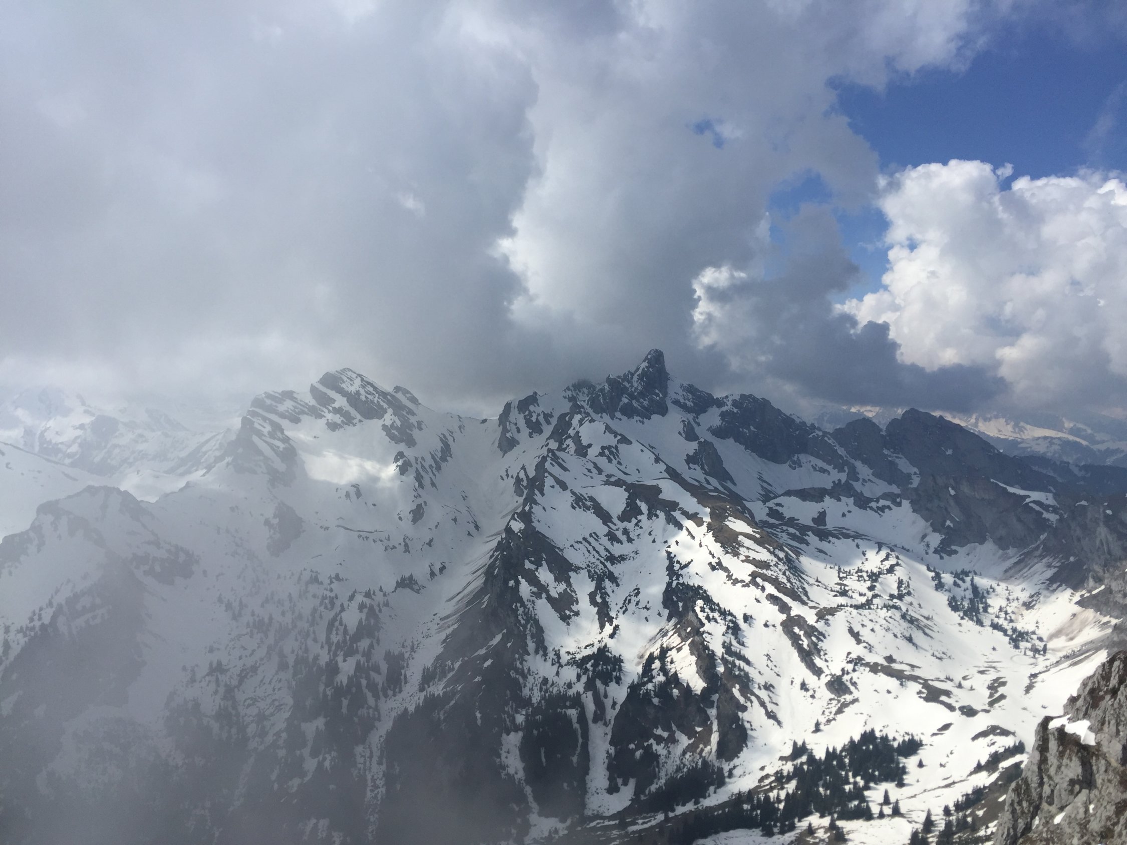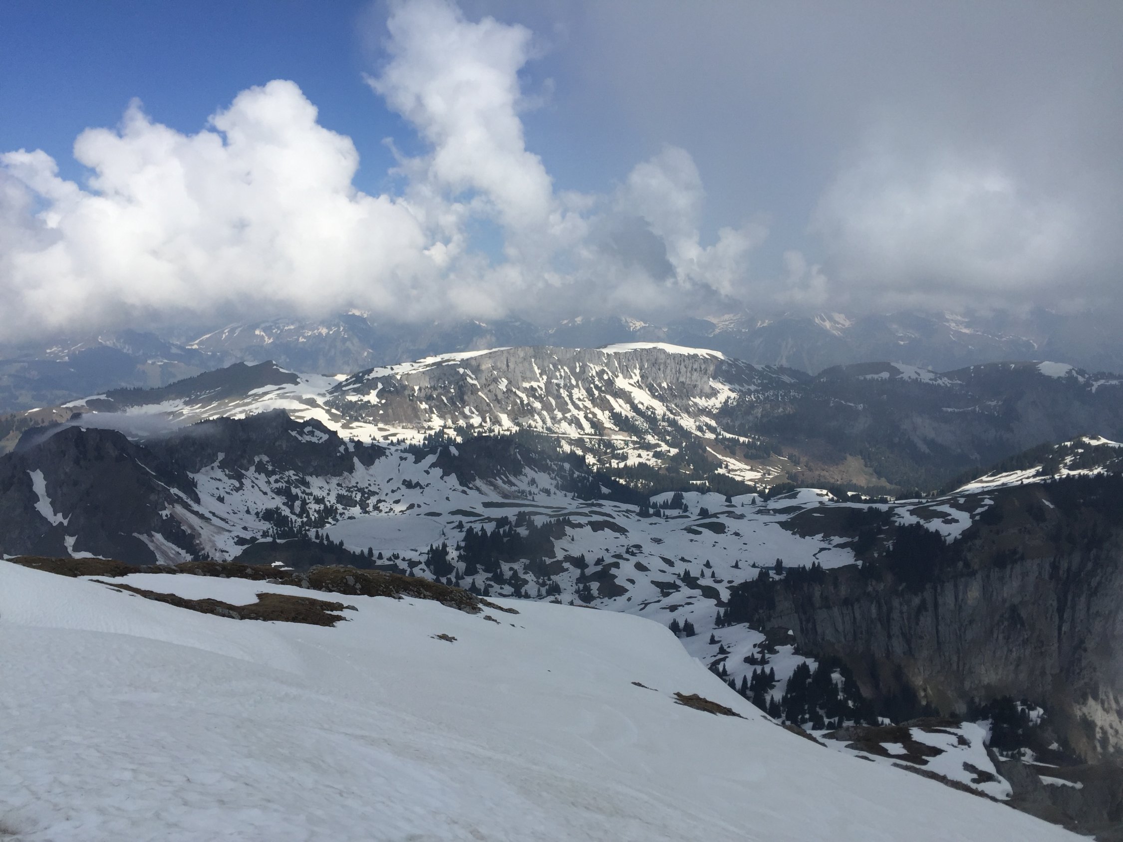 Ich wollte doch noch mal ins Diemtigtal, um die schöne Tour aufs Seehorn nachzuholen. Um 05.45 in Basel hatte es knapp 10 Grad, und so spekulierte ich auf der Anfahrt ins Diemtigtal mit Firn zumindest im oberen Teil der Tour. Aber um 08.00 beim Start am Brätliplatz zeigte das Autothermometer 12,5 Grad auf 1500 MüM! Merkwürdig, muss irgendwie warme Luft reingeflossen sein. Entsprechend Nassschnee auf der ganzen Tour. Nur 5 Minuten Ski tragen, dann konnte man anfellen. Zunächst zum Seeberg, wo ich zwei Wanderer traf. Von da an ganz allein am Berg. Der Aufstieg über die steilen Stellen der coupierten Hänge zum Gipfel war im nassen, nicht immer stabilen Schnee gar nicht ohne. Ich wich teils in apere Grate/Hänge aus, wo ich die Ski trug. Ein Pickel war mir heute auch angenehm. Das Wetter war voll schöner Stimmungen mit Wolkenbildung und dann wieder bisschen Sonne. Man sah aber, wie es in der Atmosphäre brodelte. Daher kürzte ich die Gipfelrast mit den tollen Ausblicken aufs Notwendige ab, um in der Abfahrt sicher noch Sicht zu haben. Die Abfahrt war ok, gut drehbarer und wenig bremsender Nassschnee. In den steilen Hängen gab das coole Schwünge, unterhalb Seeberg fuhr ich nur noch geradeaus. Dazwischen die kurze Tragestrecke beim Gegenanstieg zum Seeberg. Landschaftlich eine ganz tolle Tour, bin froh, hat es doch noch geklappt...