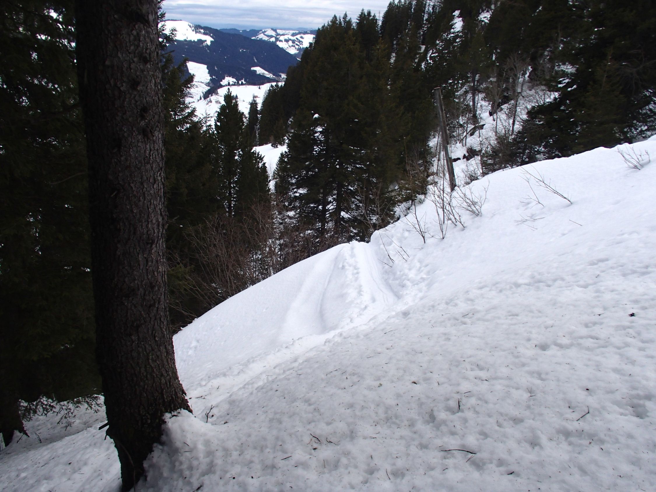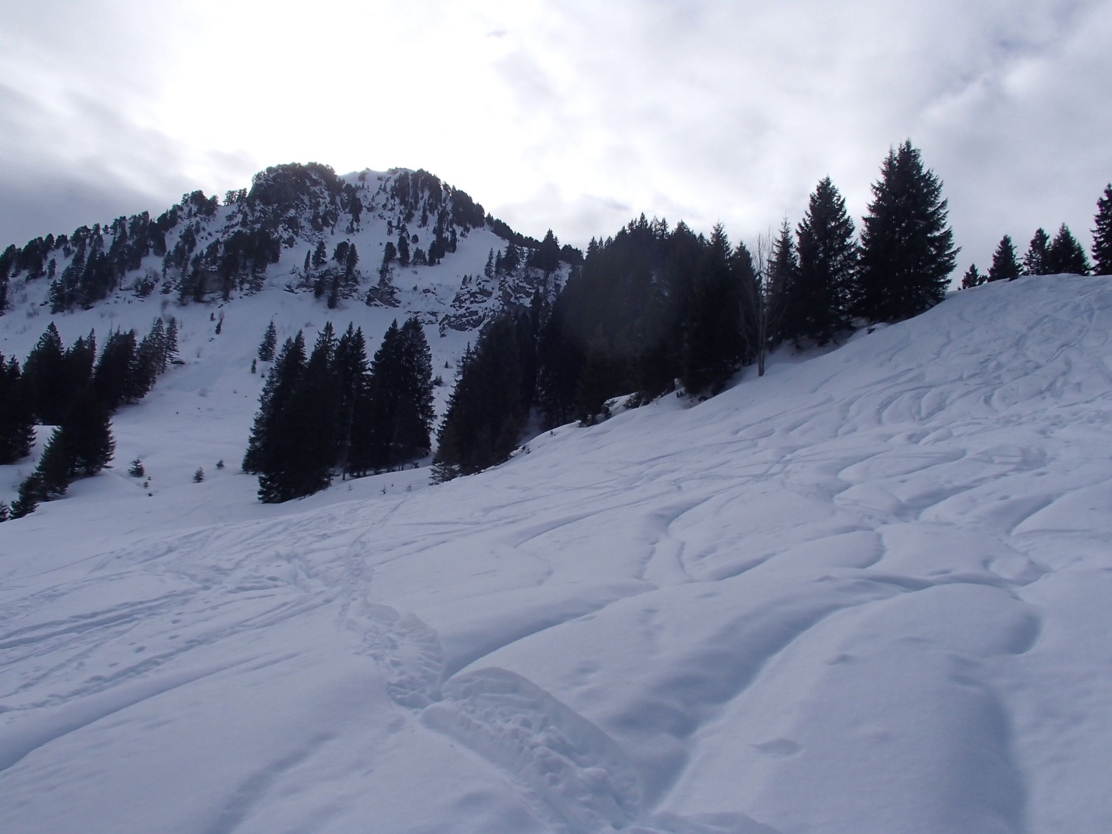 in der Traverse oberhalb Punkt 1485 ein kleiner, unbedeutender Nassschneerutsch, siehe Foto.