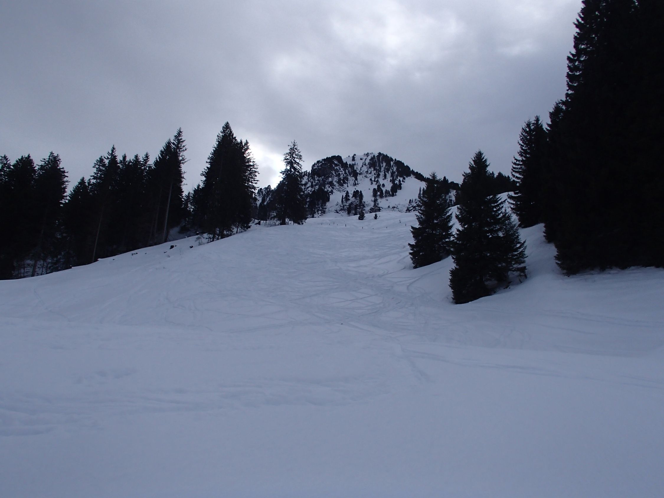 Unten war die Spur etwas glasig, deshalb besser situativ eine neue Spur legen. Die Abfahrt ging ganz ordentlich wenn es auch nicht super war. Im unteren Teil nahm ich die präparierte Piste.
