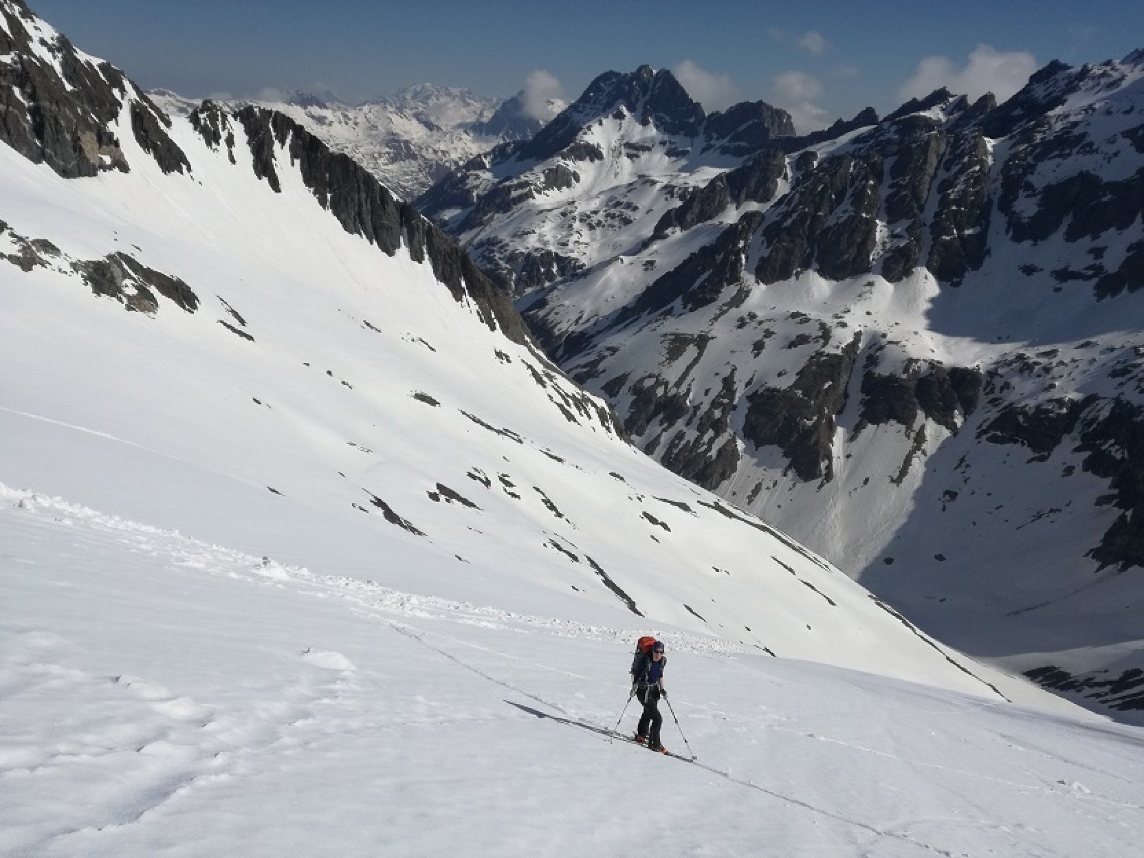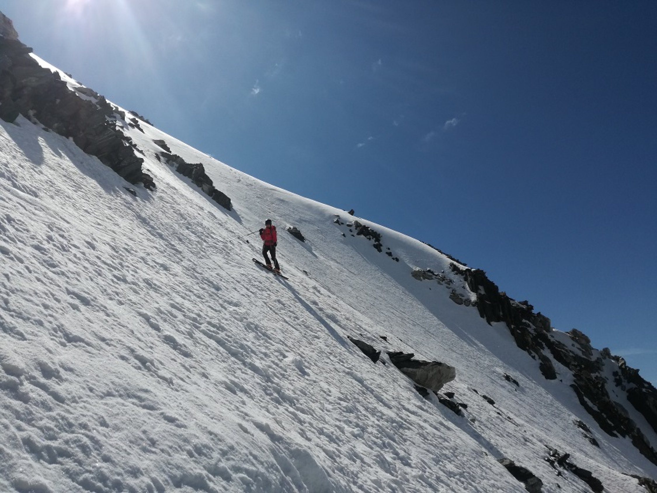 Super! Dank mehr oder weniger klarer Nacht war die Schneeoberfläche morgens genügend gefroren. Die ostseitige Abfahrt war um 7.30 Uhr perfekt sulzig, die zweite / westseitige um 11 Uhr.