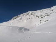 Wir wollten nicht den Gipfelgrat erreichen, die oberen zwei Drittel waren bei diesen Verhältnissen zu heikel.