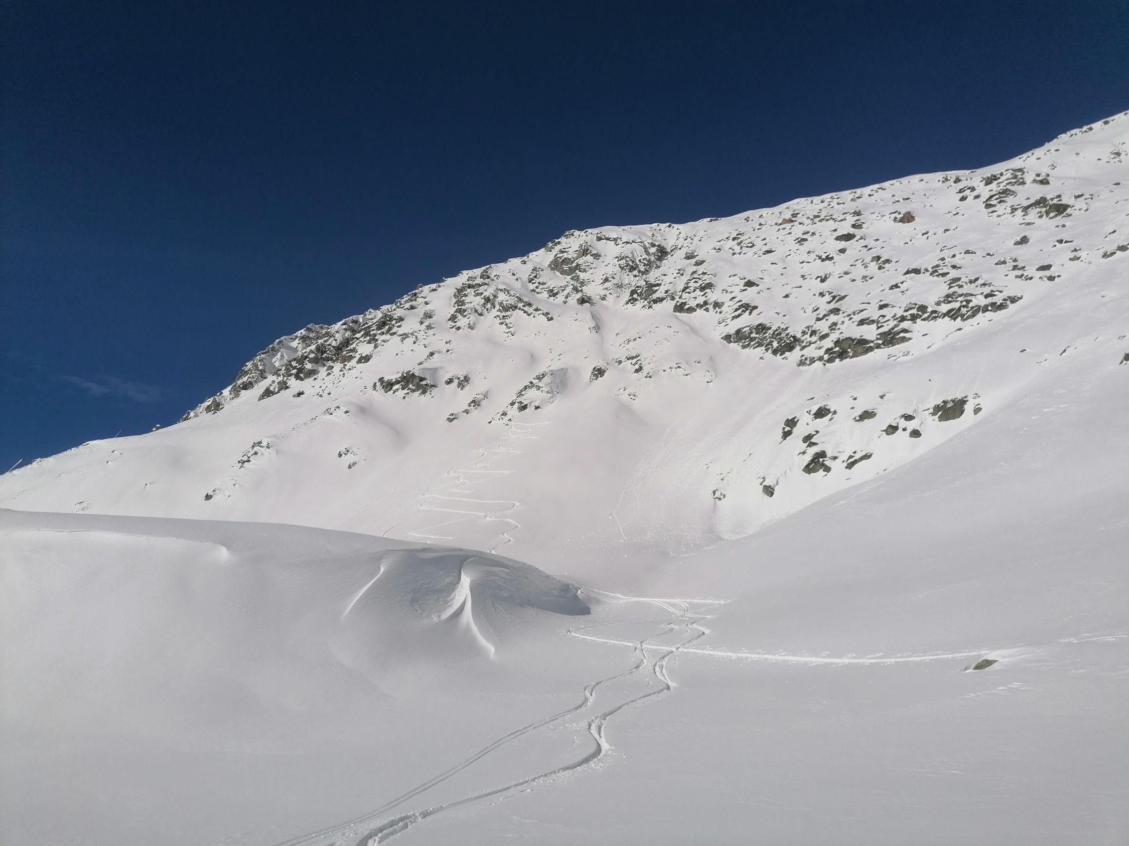 Grossartige und selten begangene Skitour hoch über der Fiescheralp, in meiner Walliser Heimat, wo wir bald leben werden. Der Aufstieg erfolgte von der Fiescheralp, über die Wilerriebe, P.2514m in die Südwand vom Bettmerhorn auf 2650m. Der Hang ist 35-40 Grad steil.