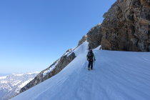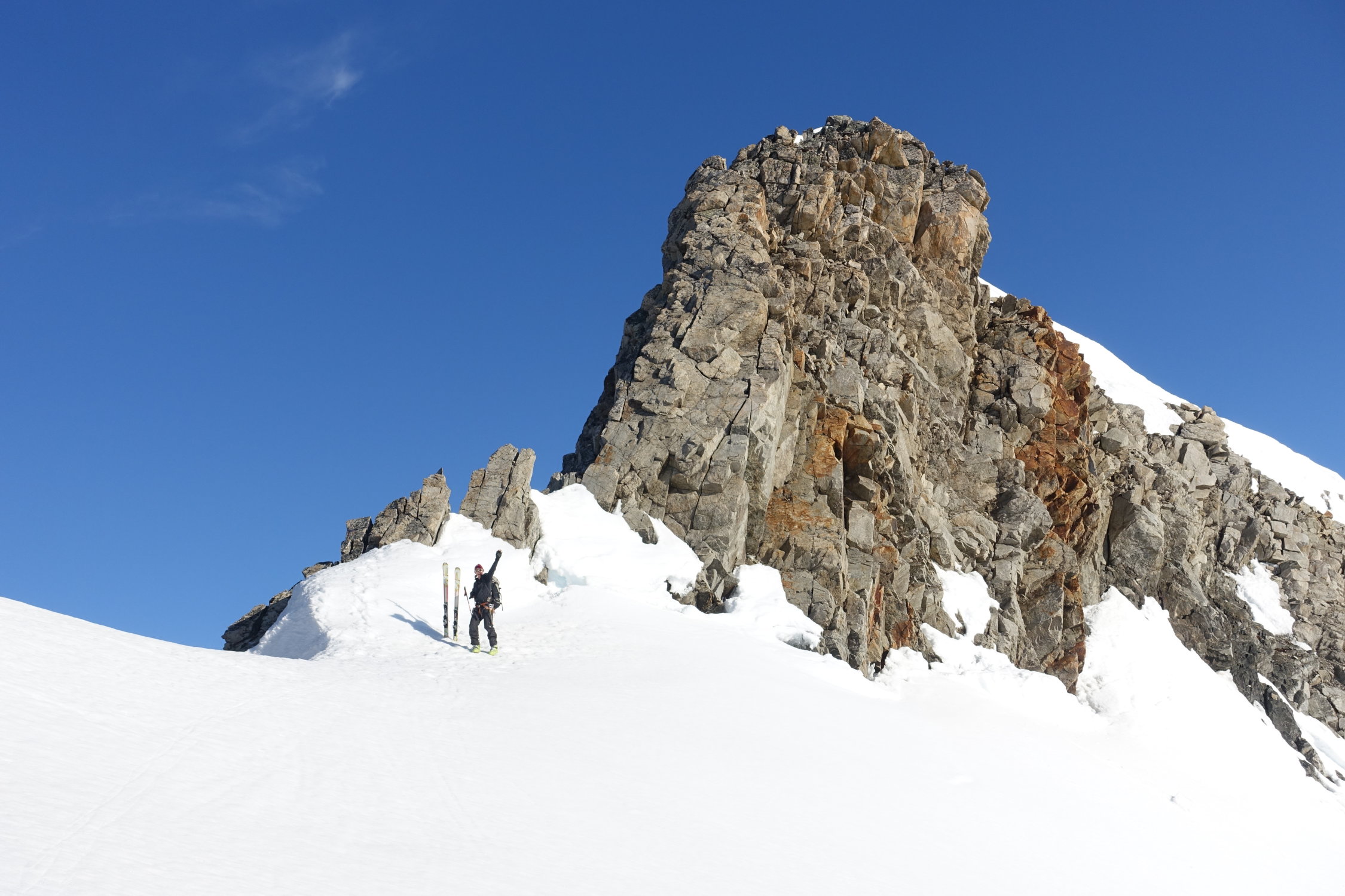 Gute Schneeverhältnisse, durchgehend Firn. Der Südgrat ist schneefrei, der Zustieg ist einfach da die Schlüsselstelle noch unter dem Schnee liegt.