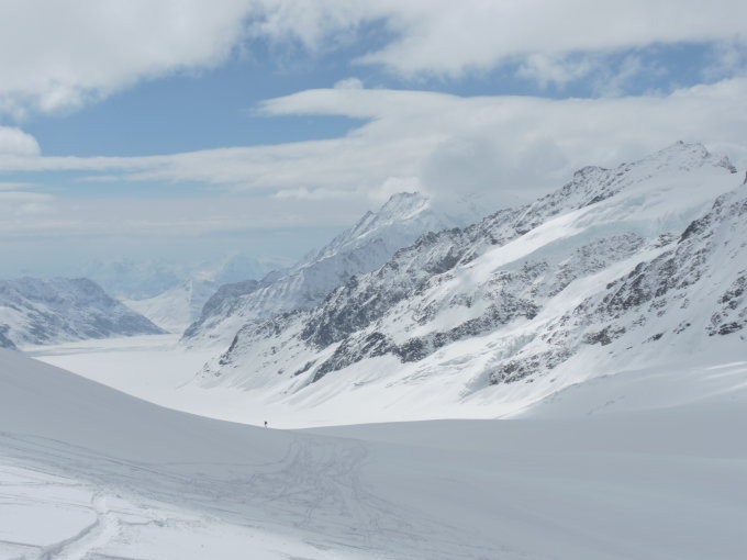 Ein Dank den Spurenden ! Finsteraarhorn Hütte ist sehr zu Empfehlen. Den Heimweg ab der Hütte bis Fafleralp zieht sich in die Länge. Zwischen Halt in der Hollandiahütte ein feiner Apfel Kuchen mmmmhh !