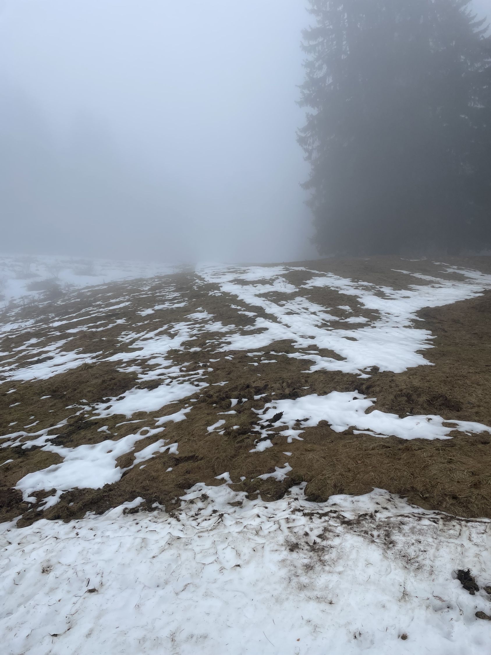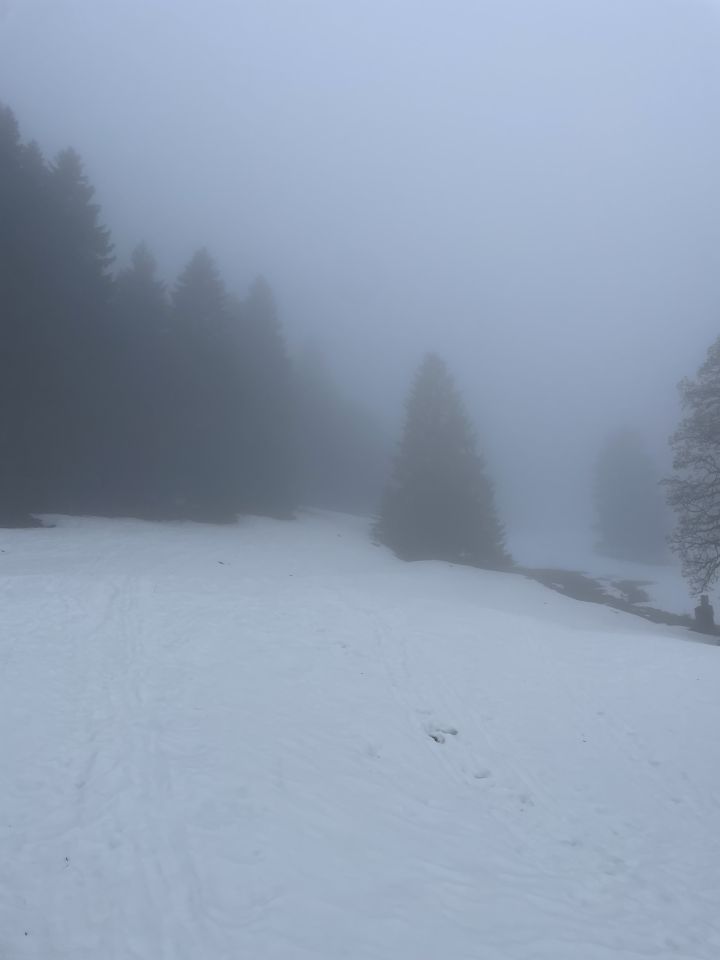 Rekorunde heute und: Die Webcam log nicht: Trotz Frühling in Basel war es in Untermulten bei dickem Nebel nur etwas über 5 Grad und ziemlich feucht. Schnee hatte es gerade noch, kurze Tragestrecke bei der Talstation. Aufstieg trotz sehr wenig Sicht problemlos, da weissgott bekannt. Ich sah gerade mal einen Skifahrer heute, sonst hatte ich den Berg für mich. Auch mal was! Schnee natürlich völlig durchnässt, schon schade, dass auf die schönen Schneefälle gleich eine solche Wärmeperiode folgt… Abfahrt ziemlich im Blindflug, Schnee aber ganz gut. Für Leute mit einem leicht abseitigen Humor wie ich ganz ok.