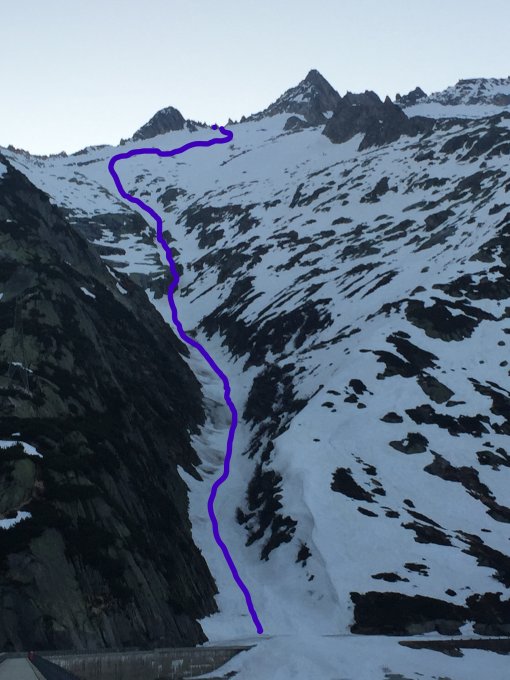 Gute Verhältnisse; ab Staudamm 1770m bis ca.2400m nicht gefroren; dann bis zur Lücke harter Schnee.