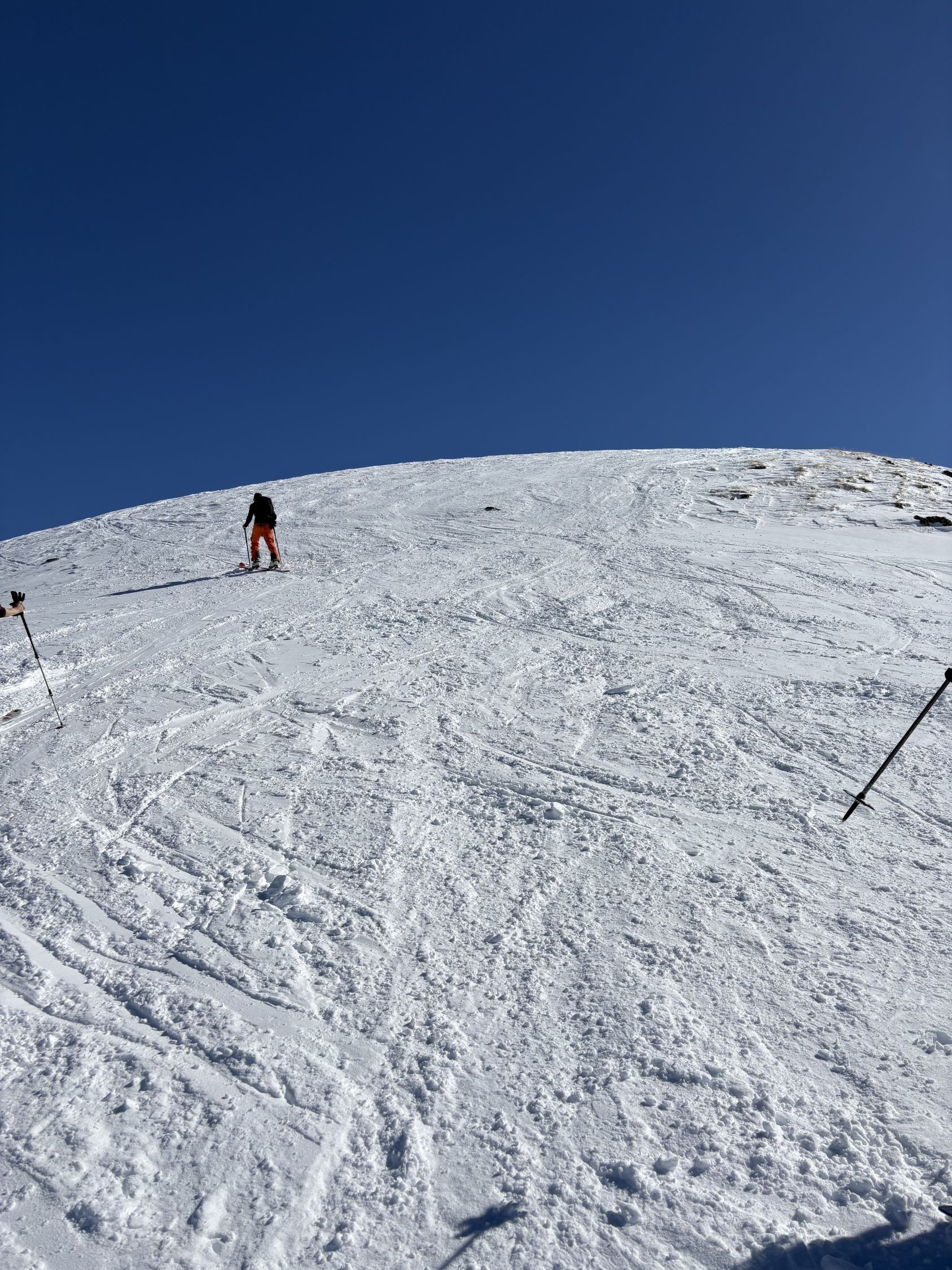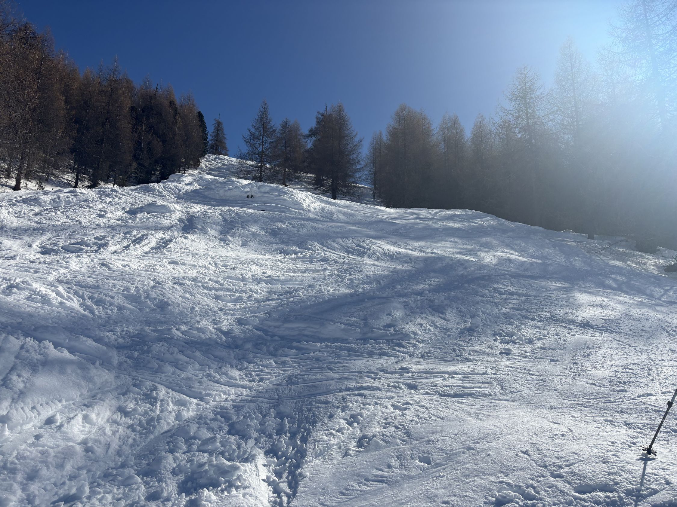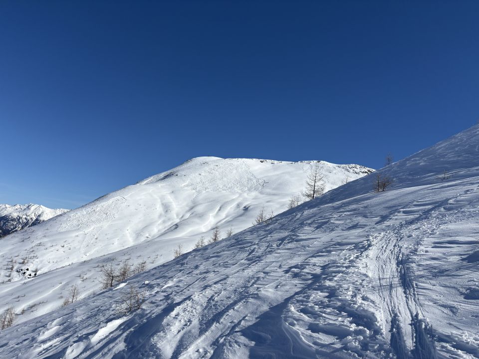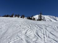 Wir wollten eigentlich auf den Piz Murtiröl, sind dann aber wegen Lawinen in der Flanke den anderen Tourengänger folgend auf den Piz Arpiglia umgeschwenkt. Genügend Schnee auf der ganzen Route. Die Waldschneise war erwartungsgemäss vereist. Oben erfreuliche Verhältnisse (Presspulver, Sulz).