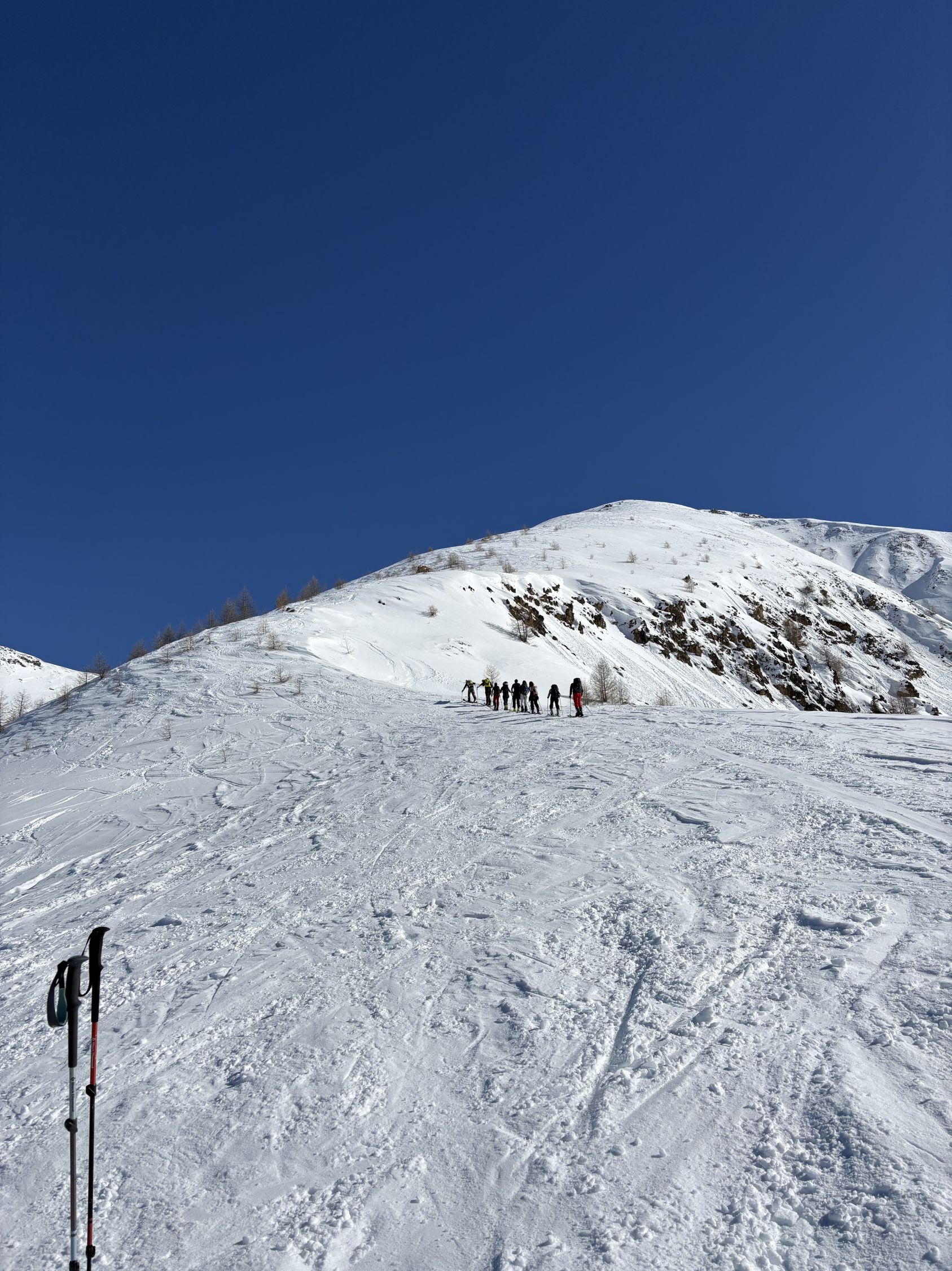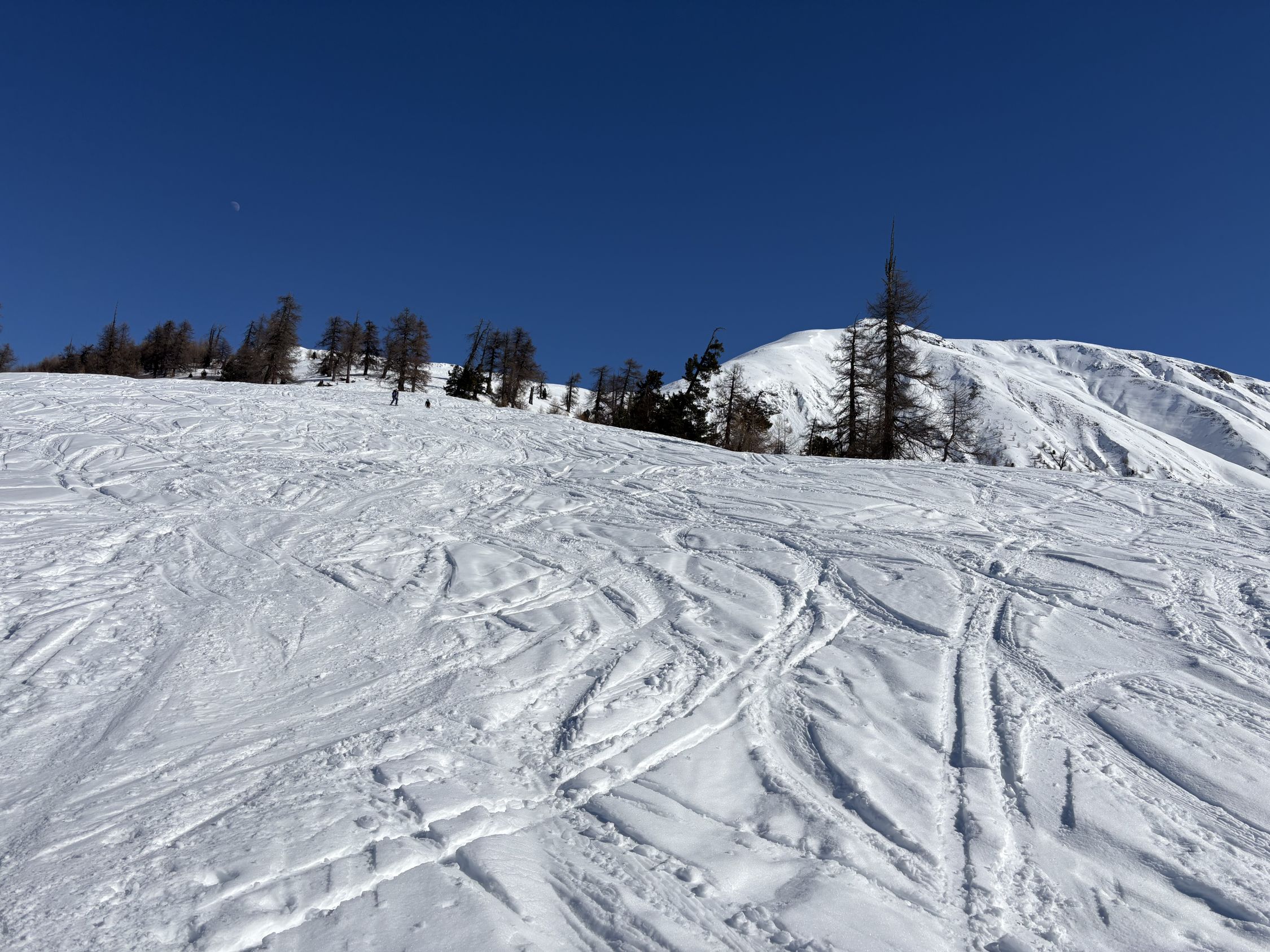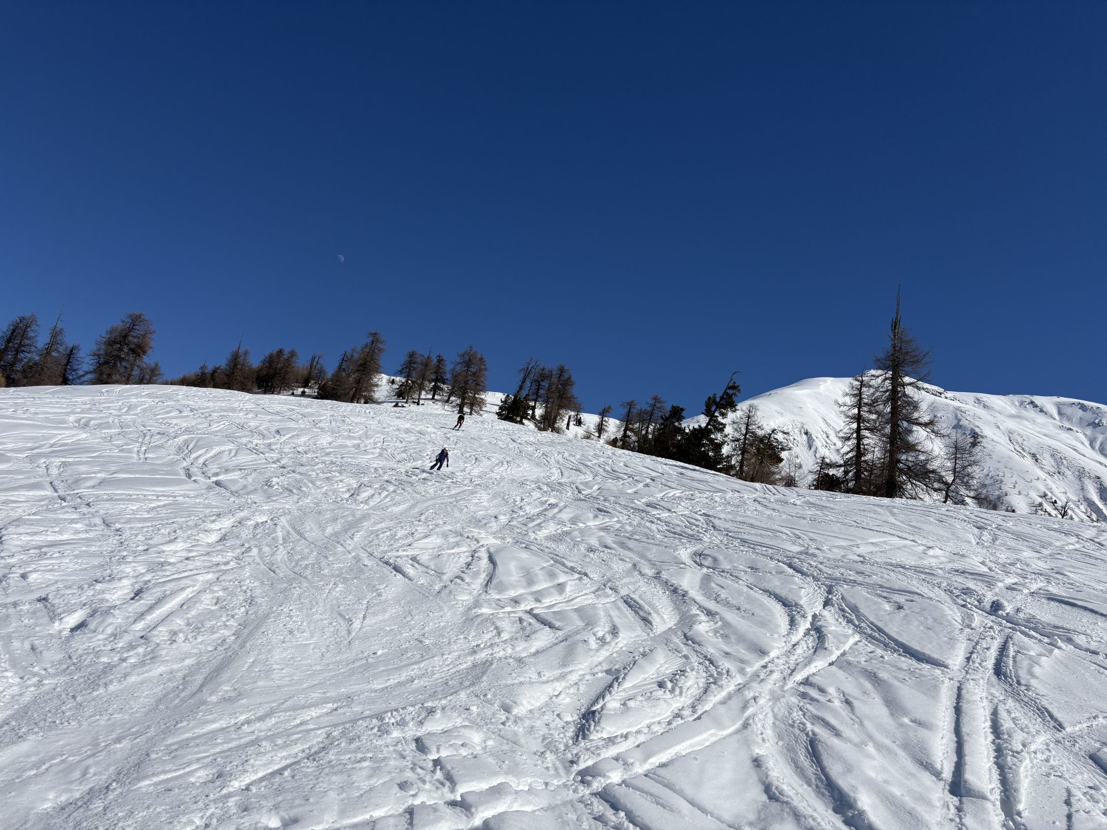 Wir wollten eigentlich auf den Piz Murtiröl, sind dann aber wegen Lawinen in der Flanke den anderen Tourengänger folgend auf den Piz Arpiglia umgeschwenkt. Genügend Schnee auf der ganzen Route. Die Waldschneise war erwartungsgemäss vereist. Oben erfreuliche Verhältnisse (Presspulver, Sulz).