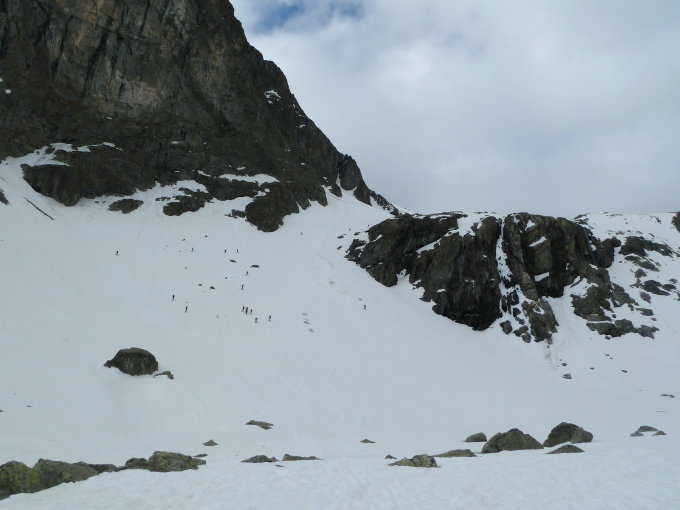 Übergang in Scharte auf Wechte ist steil aber gut machbar bei dem Schnee.