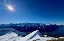 Heute toller Tourentag 8.30 Uhr ab Turren leicht zum Gipfel. ca. 11 Uhr Abfahrt in leichtem Sulzschnee nach Schönbühl, hier Kaffee und Kuchen, dann nochmals an Fellen und auf den Gipfel. 12 Uhr bei besten Verhältnissen Abfahrt nach Turren.