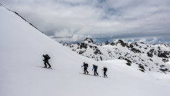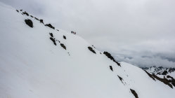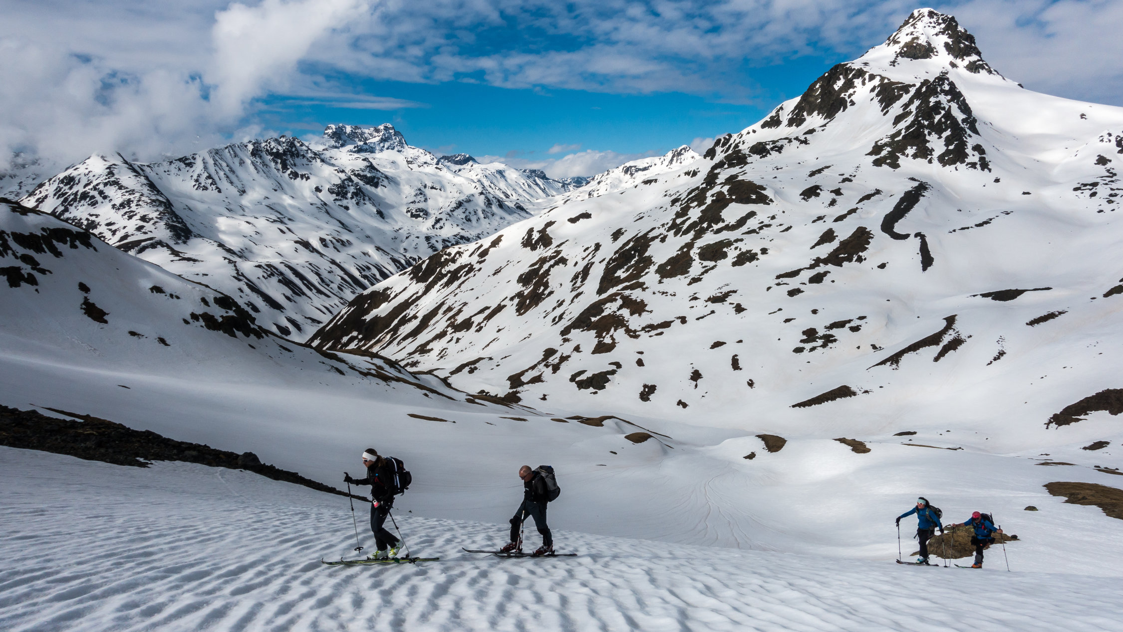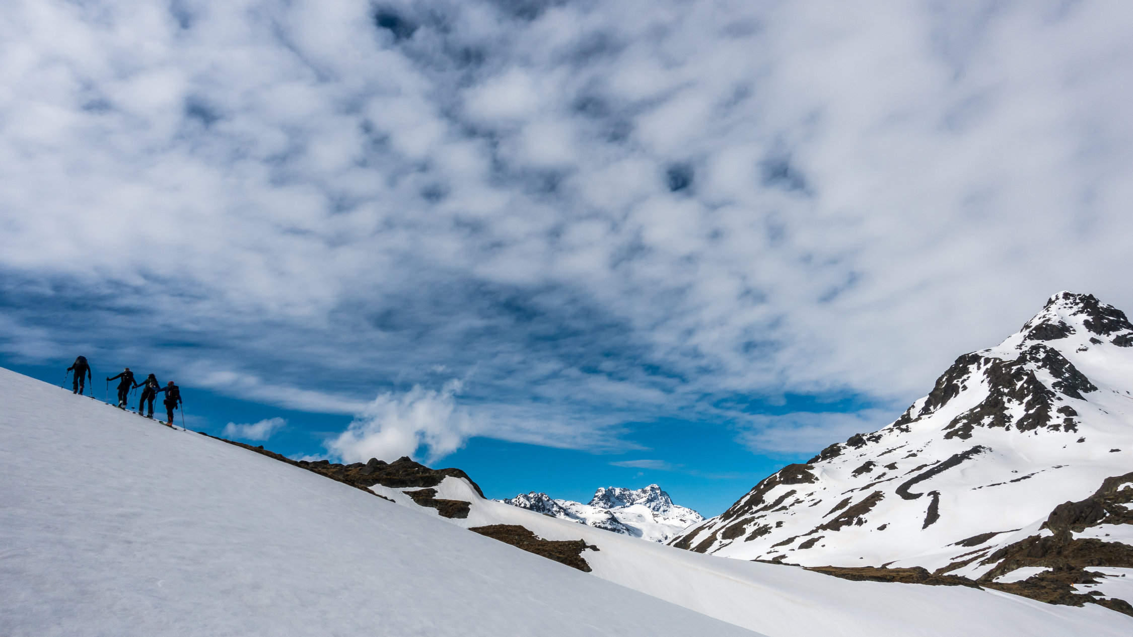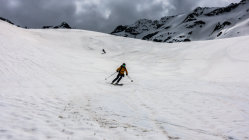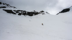 Start ab Dürrboden um 7 Uhr bei Traumwetter, +5°, Schneedecke nicht gefroren aber dank "Sommerschnee" trotzdem tragend. Vom Parkplatz nach rechts über die Brücke und gleich Ski anziehen. Danach noch 2-3 Mal ein paar Schritte laufen. Ab ca. 2500 m an Nordhängen gefrorener Schnee. Schon bald nach dem Start wieder aufziehende Wolken und ab 9.30 Uhr war der Himmel bewölkt. Schöner, einfacher Aufstieg zum Gipfel von Süden her, kurze Abfahrt durch tiefen "Sumpf" und Übergang zur Lücke zwischen Scalettahorn und Piz Grialetsch. Ab dort Abfahrt über die steilen Nordosthänge hinunter nach Dürrboden bei unterschiedlichen Verhältnissen. In den oberen Steilhängen teils guter Sulz, teils tiefer Nassschnee. Weiter unten im flacheren Gelände dann super Sulzschnee und gegen Schluss vor Dürrboden Bremsschnee.