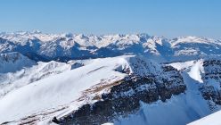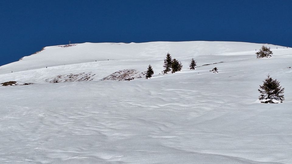 Tragende Schneedecke bis hinauf. An 10.00 h schon aufgefirnt. Bis zur Ragazalpe schöner Firn. Danach von sehr weich in der Sonne bis sehr hart im Schatten.