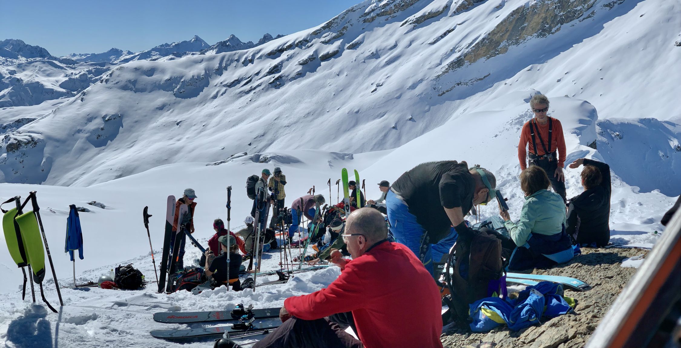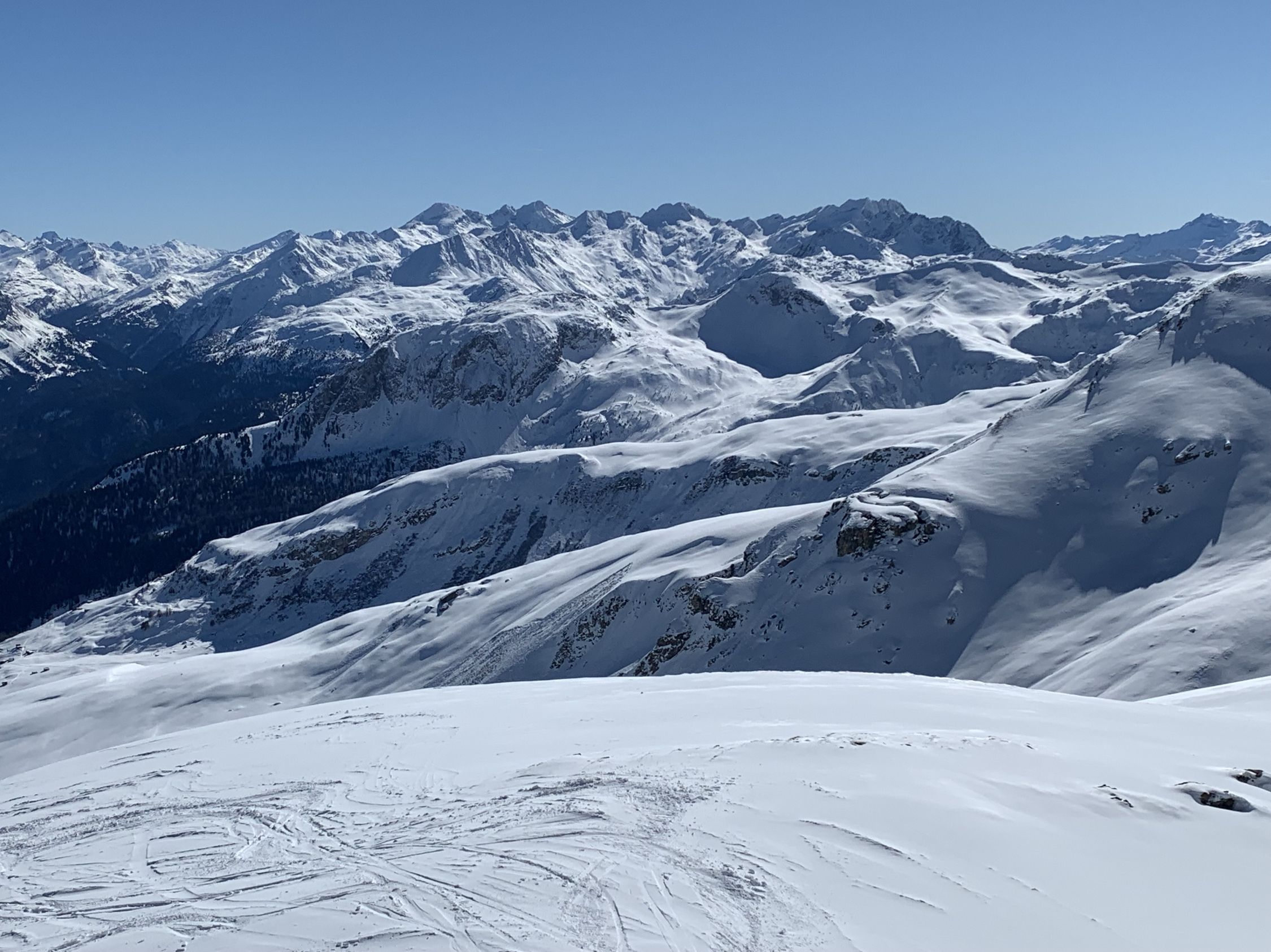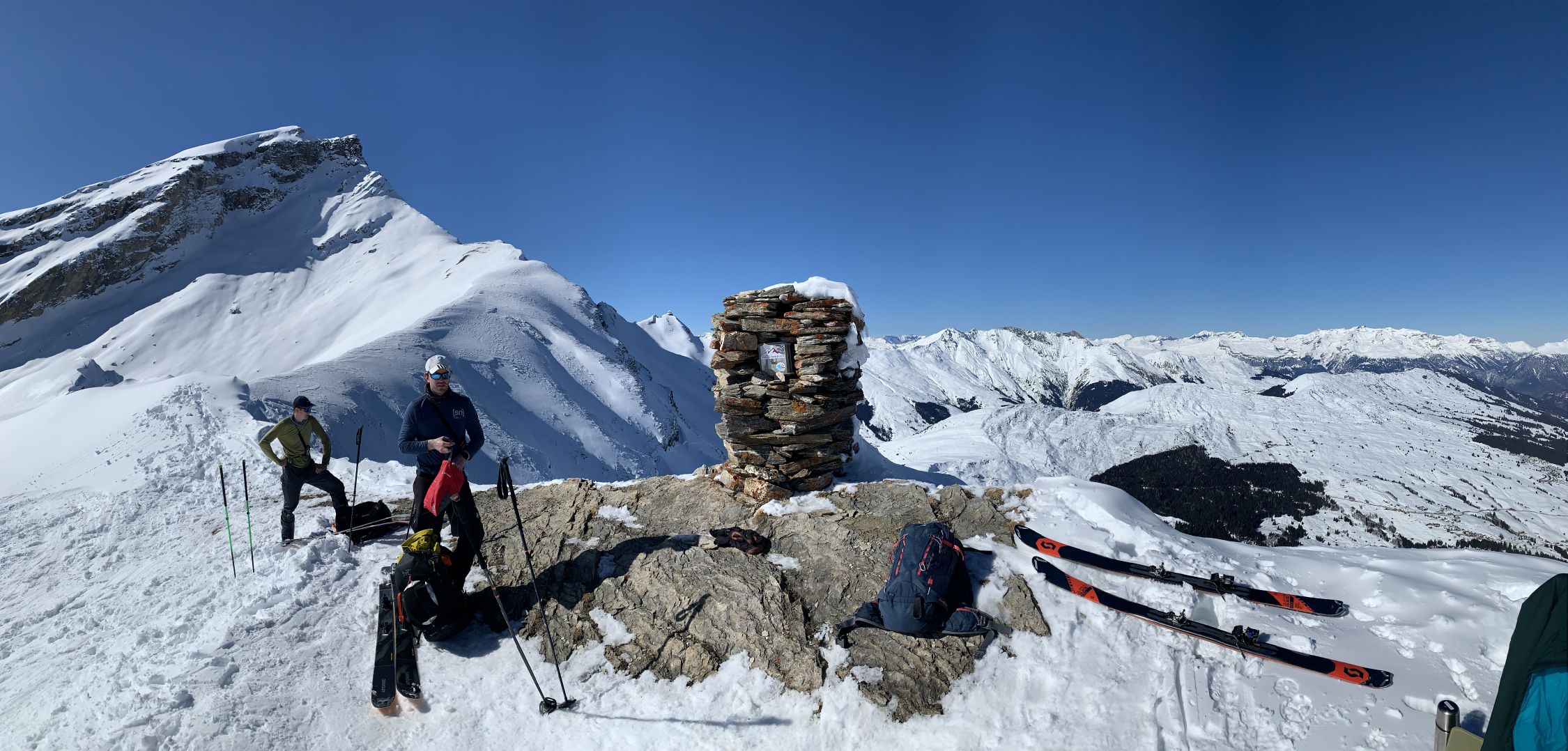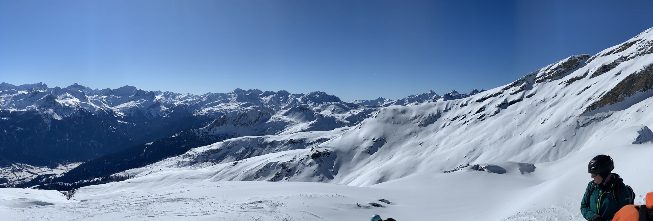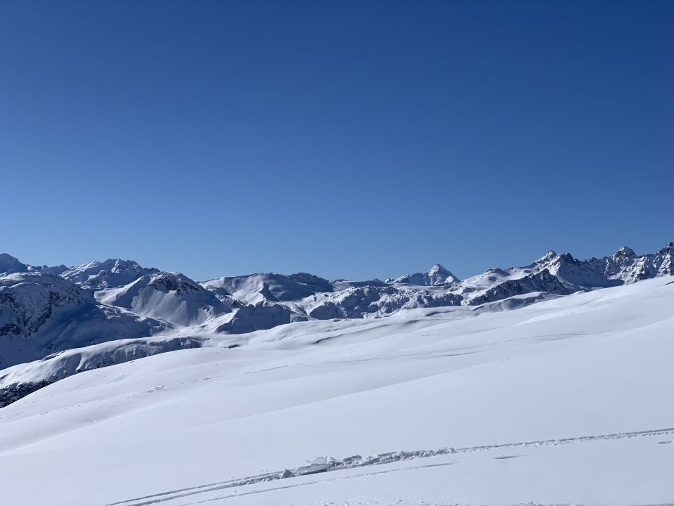 Frühjahrstour, gefühlt Ende April. Kaiserwetter, warm, windstill, strahlender Sonnenschein, prächtiges Panorama, die Route nicht eben spannend - der Sehnsuchtsblick geht dann zum Beverin rüber, wo man allerdings aus gutem Grund niemanden gehen sah. Dafür an die 30 auf dem P.